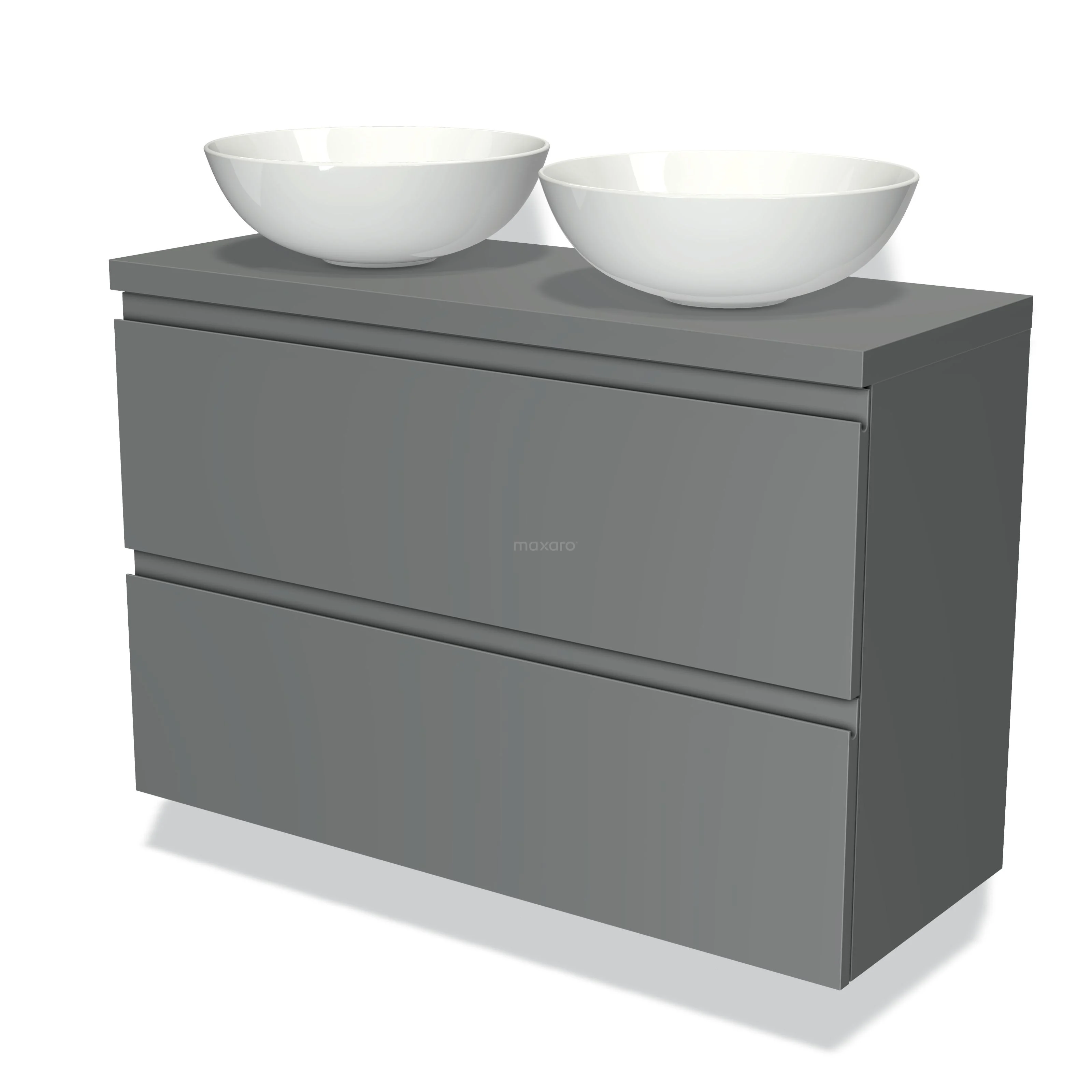 Modulo Plato Slim Badmöbel mit Aufsatzwaschbecken | 100 cm Mittelgrau Grifflos front Mittelgrau blatt 2 übereinanderliegende Schubladen