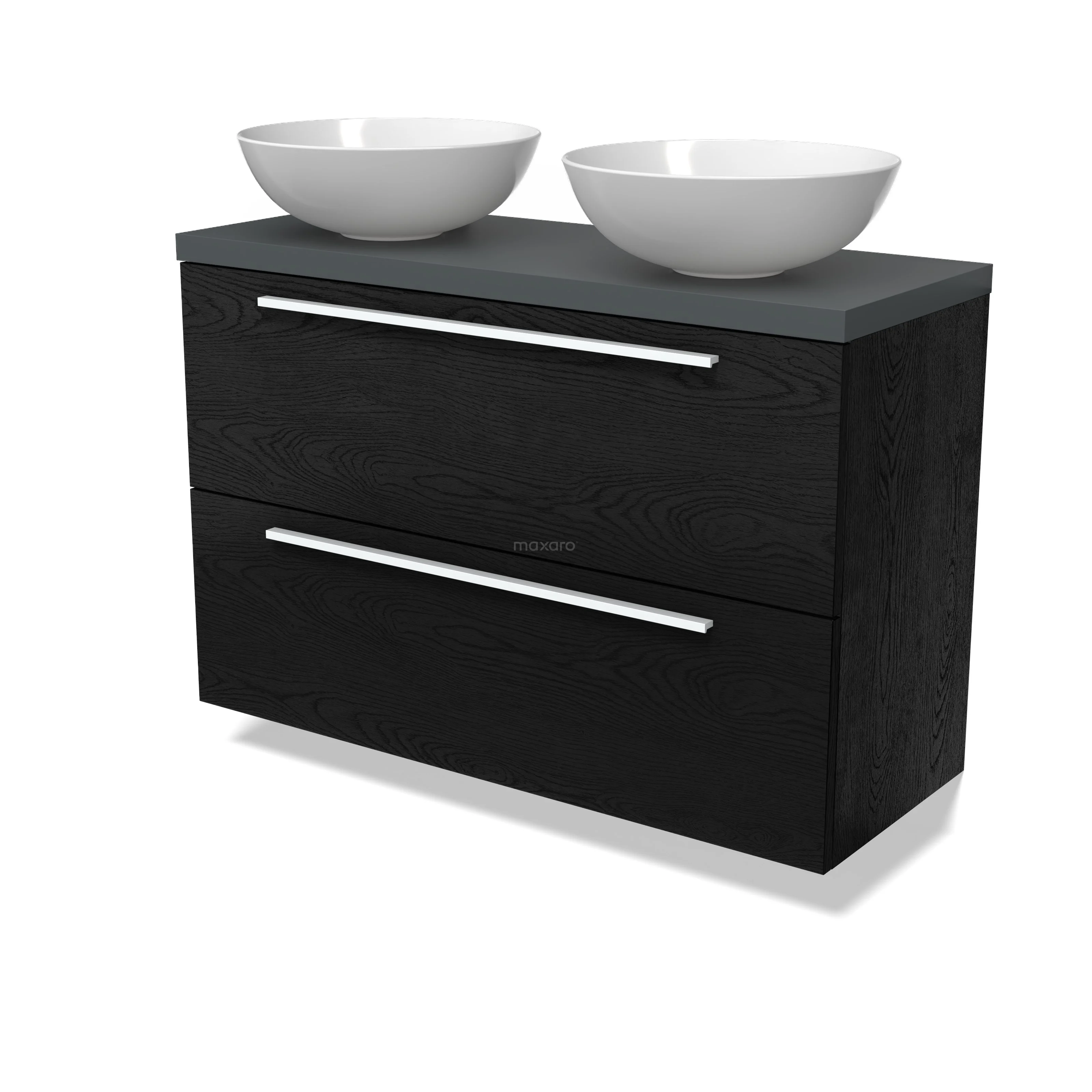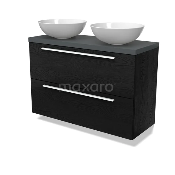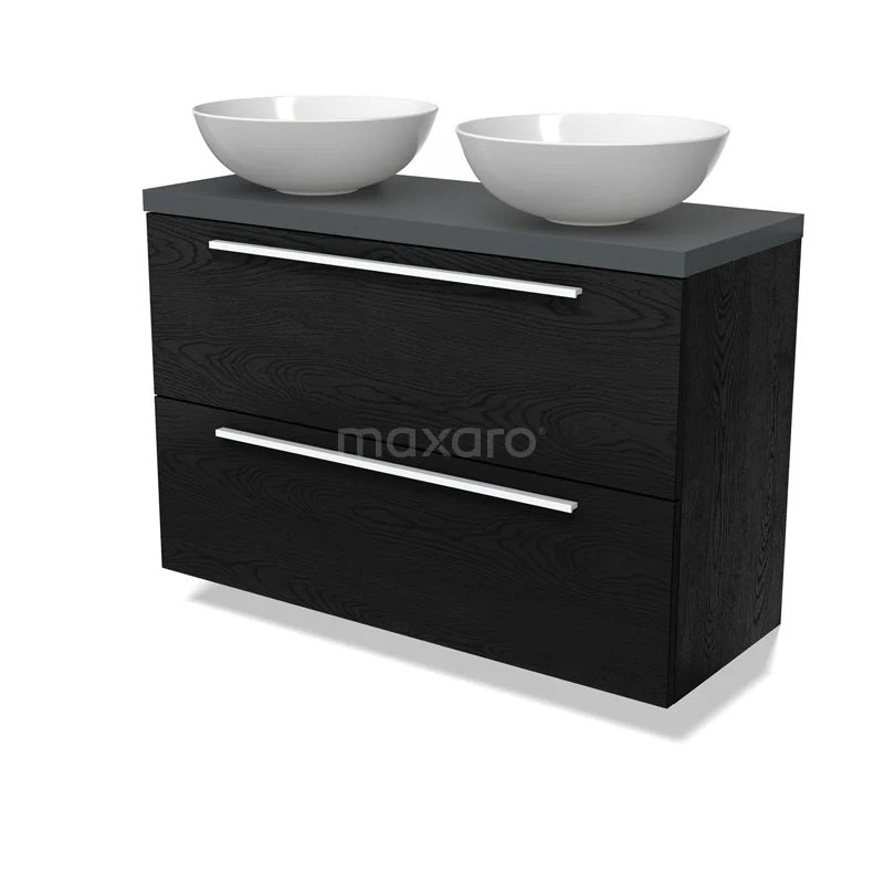 Modulo Plato Slim Badmöbel mit Aufsatzwaschbecken | 100 cm Schwarze Eiche Flach front Dunkelgrau blatt 2 übereinanderliegende Schubladen