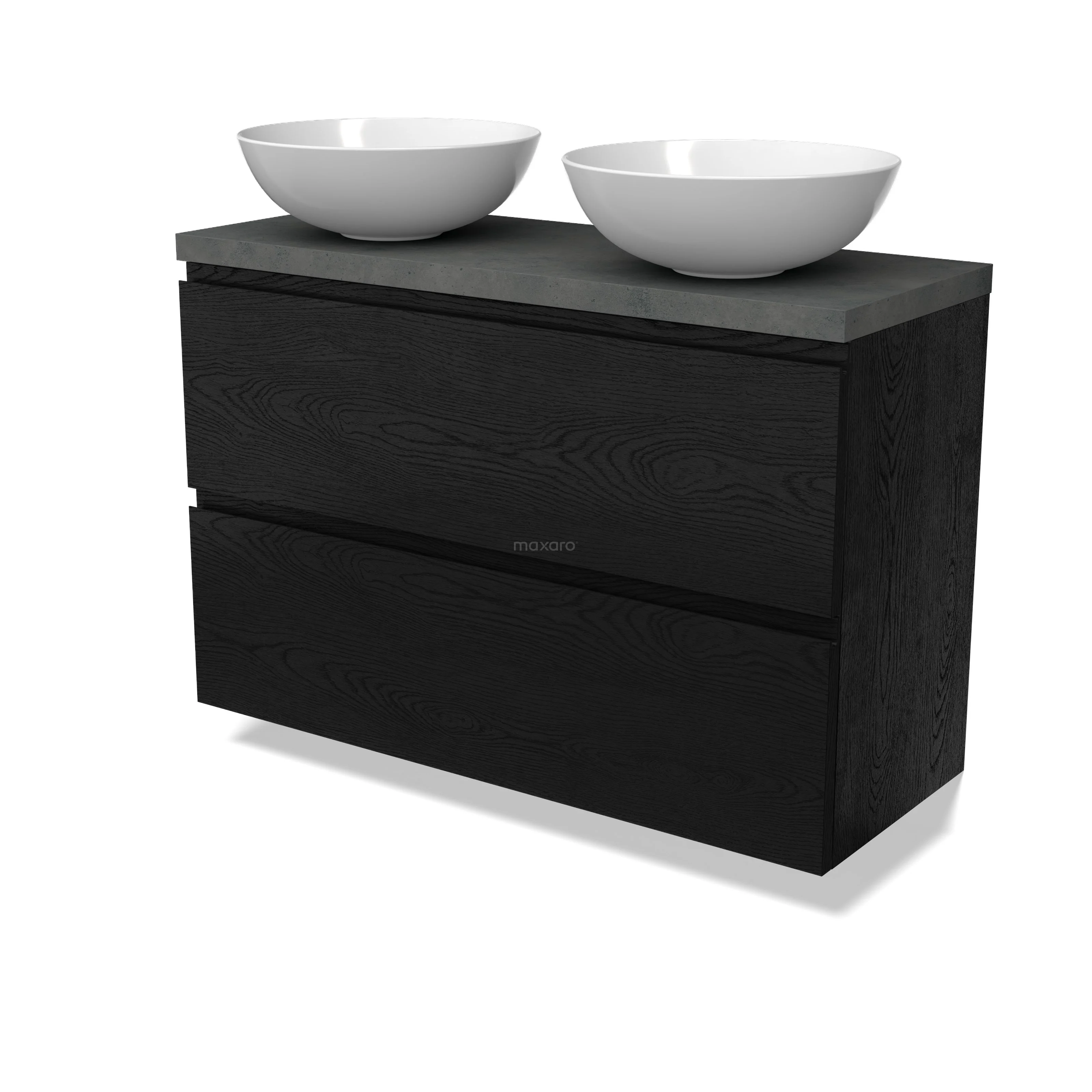 Modulo Plato Slim Badmöbel mit Aufsatzwaschbecken | 100 cm Schwarze Eiche Grifflos front Dunkelgrauer Beton blatt 2 übereinanderliegende Schubladen
