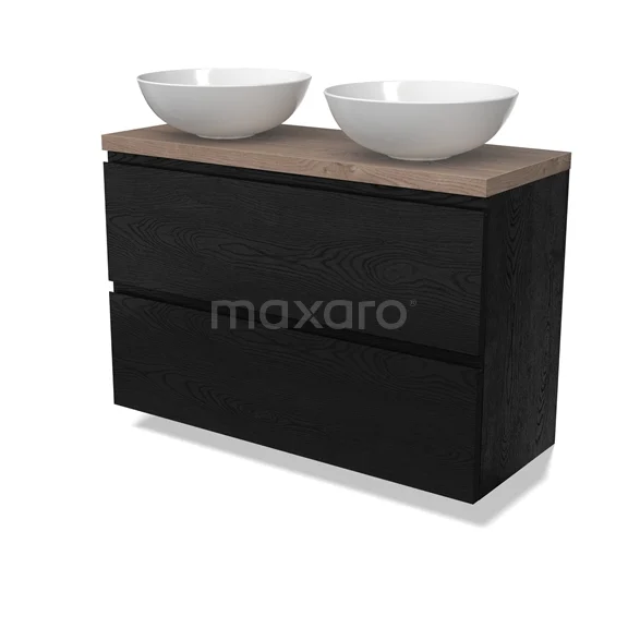 Modulo Plato Slim Badmöbel mit Aufsatzwaschbecken | 100 cm Schwarze Eiche Grifflos front Mittelbraune Eiche blatt 2 übereinanderliegende Schubladen