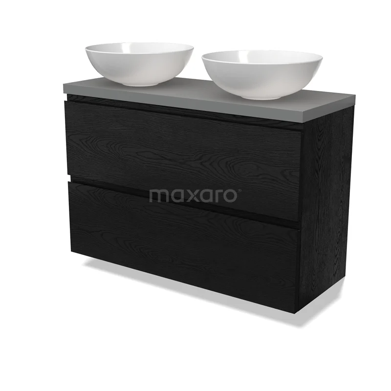 Modulo Plato Slim Badmöbel mit Aufsatzwaschbecken | 100 cm Schwarze Eiche Grifflos front Mittelgrau blatt 2 übereinanderliegende Schubladen