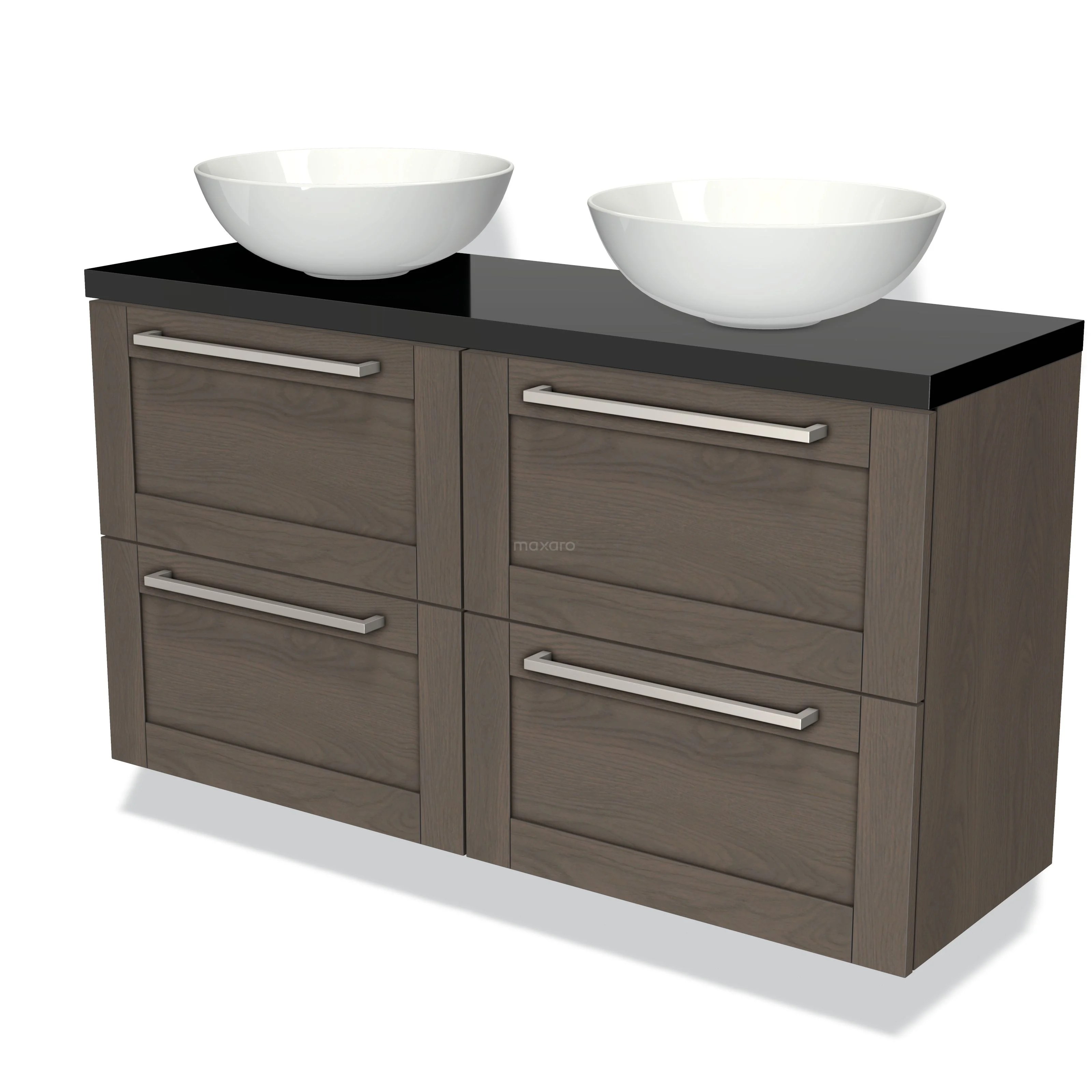 Modulo Plato Slim Badmöbel mit Aufsatzwaschbecken | 120 cm Dunkelbraune Eiche Rahmen front Hochglanz Schwarz blatt 4 Schubladen