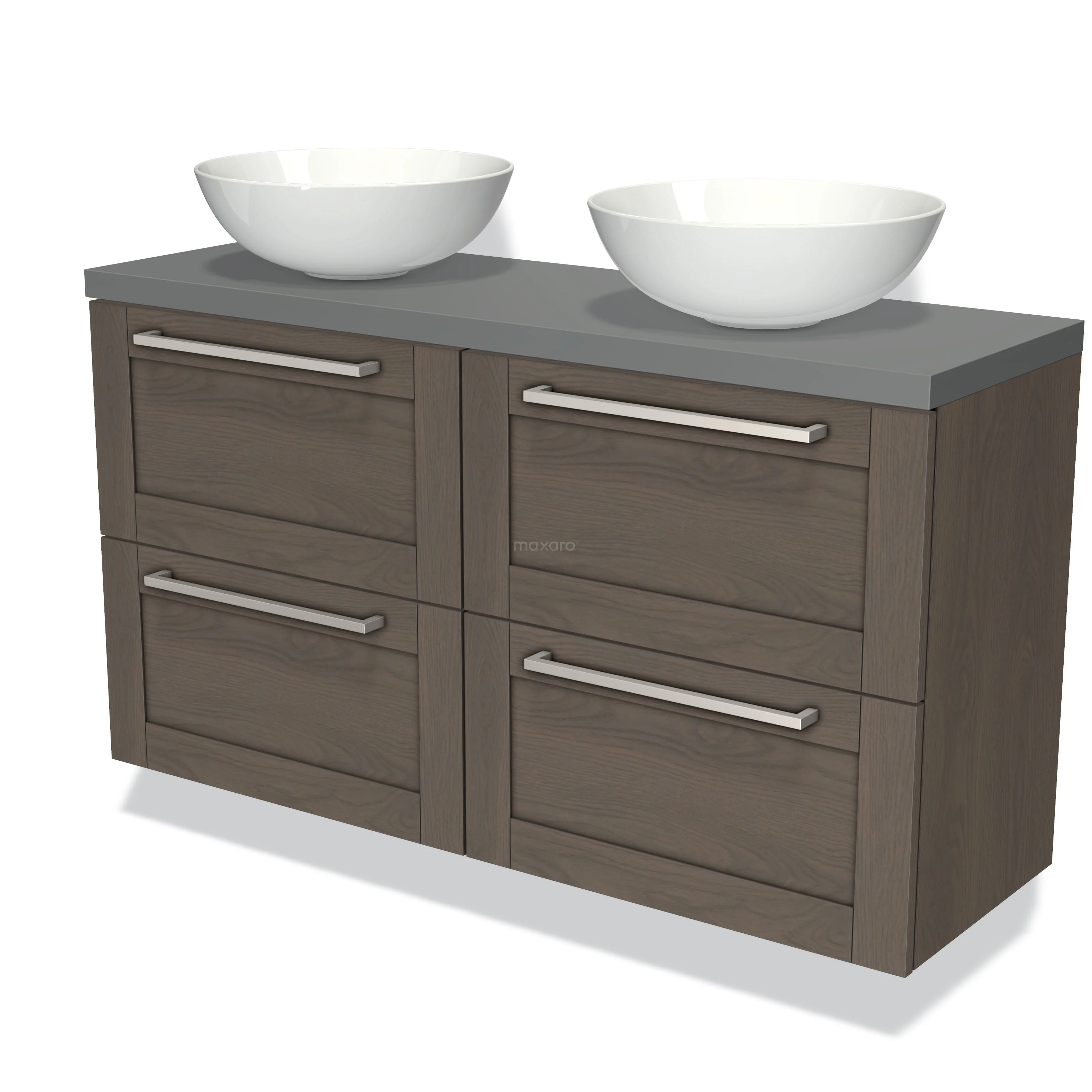 Modulo Plato Slim Badmöbel mit Aufsatzwaschbecken | 120 cm Dunkelbraune Eiche Rahmen front Mittelgrau blatt 4 Schubladen