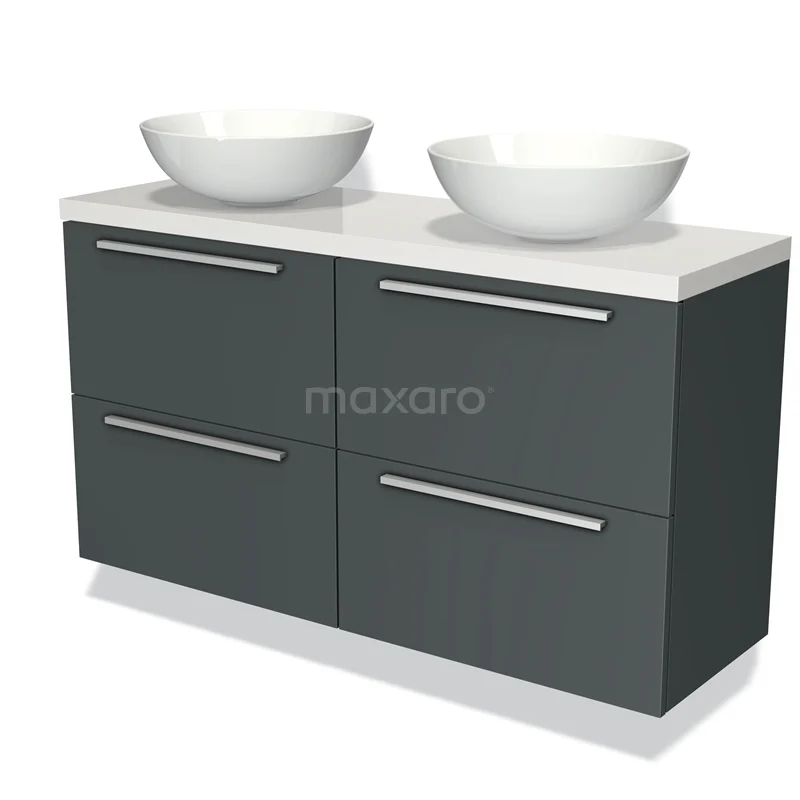 Modulo Plato Slim Badmöbel mit Aufsatzwaschbecken | 120 cm Dunkelgrau Flach front Hochglanz Weiß blatt 4 Schubladen
