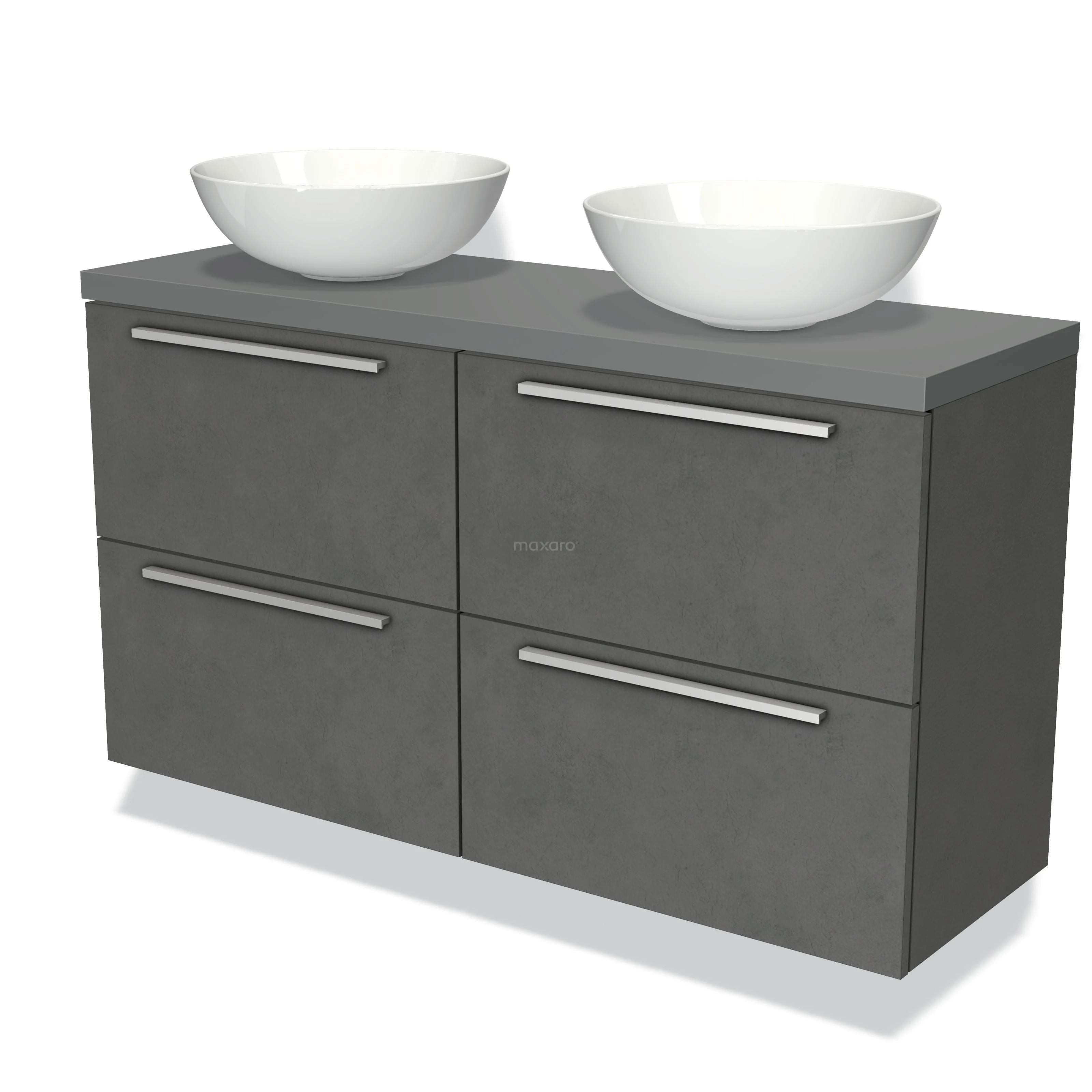 Modulo Plato Slim Badmöbel mit Aufsatzwaschbecken | 120 cm Dunkelgrauer Beton Flach front Mittelgrau blatt 4 Schubladen