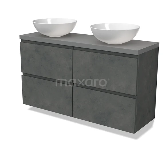 Modulo Plato Slim Badmöbel mit Aufsatzwaschbecken | 120 cm Dunkelgrauer Beton Grifflos front Mittelgrau blatt 4 Schubladen