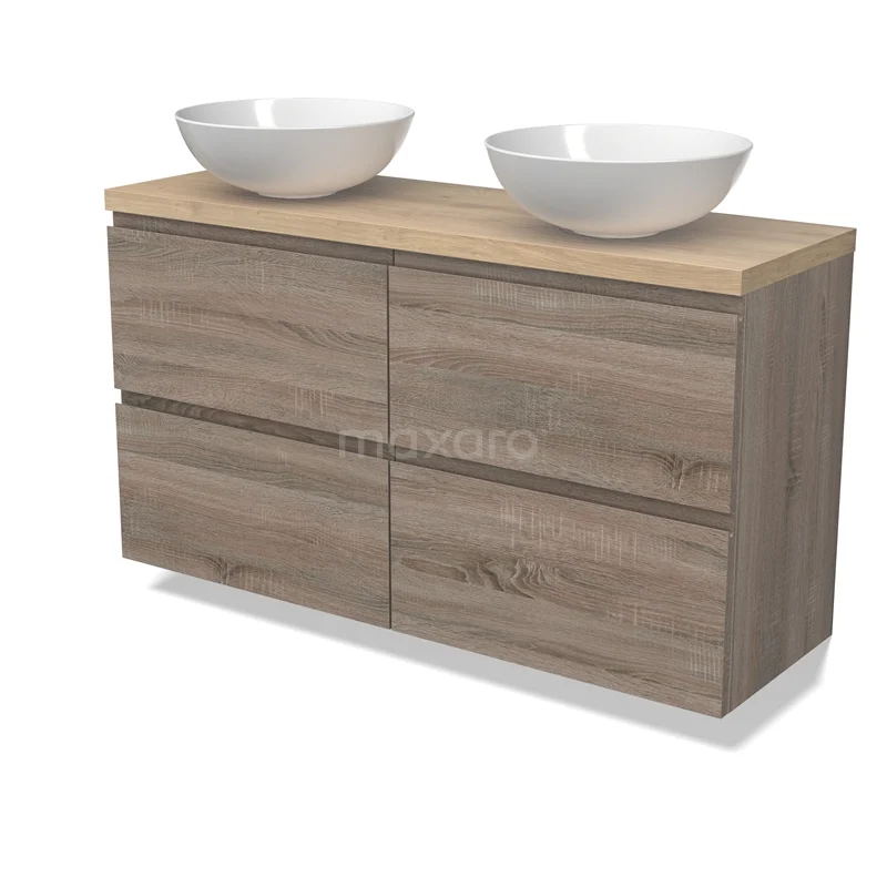 Modulo Plato Slim Badmöbel mit Aufsatzwaschbecken | 120 cm Eiche Grifflos front Hellbraune Eiche blatt 4 Schubladen