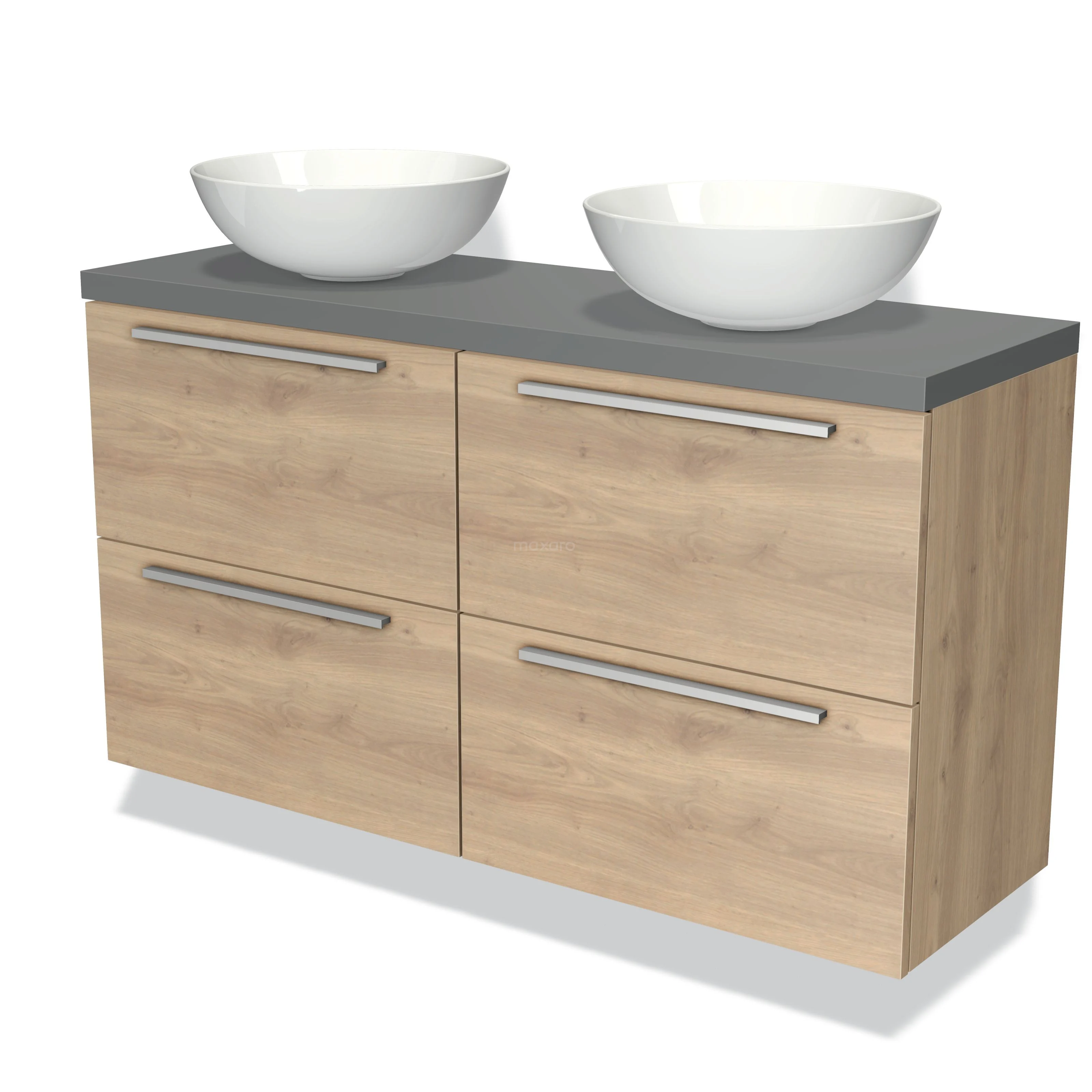 Modulo Plato Slim Badmöbel mit Aufsatzwaschbecken | 120 cm Hellbraune Eiche Flach front Mittelgrau blatt 4 Schubladen