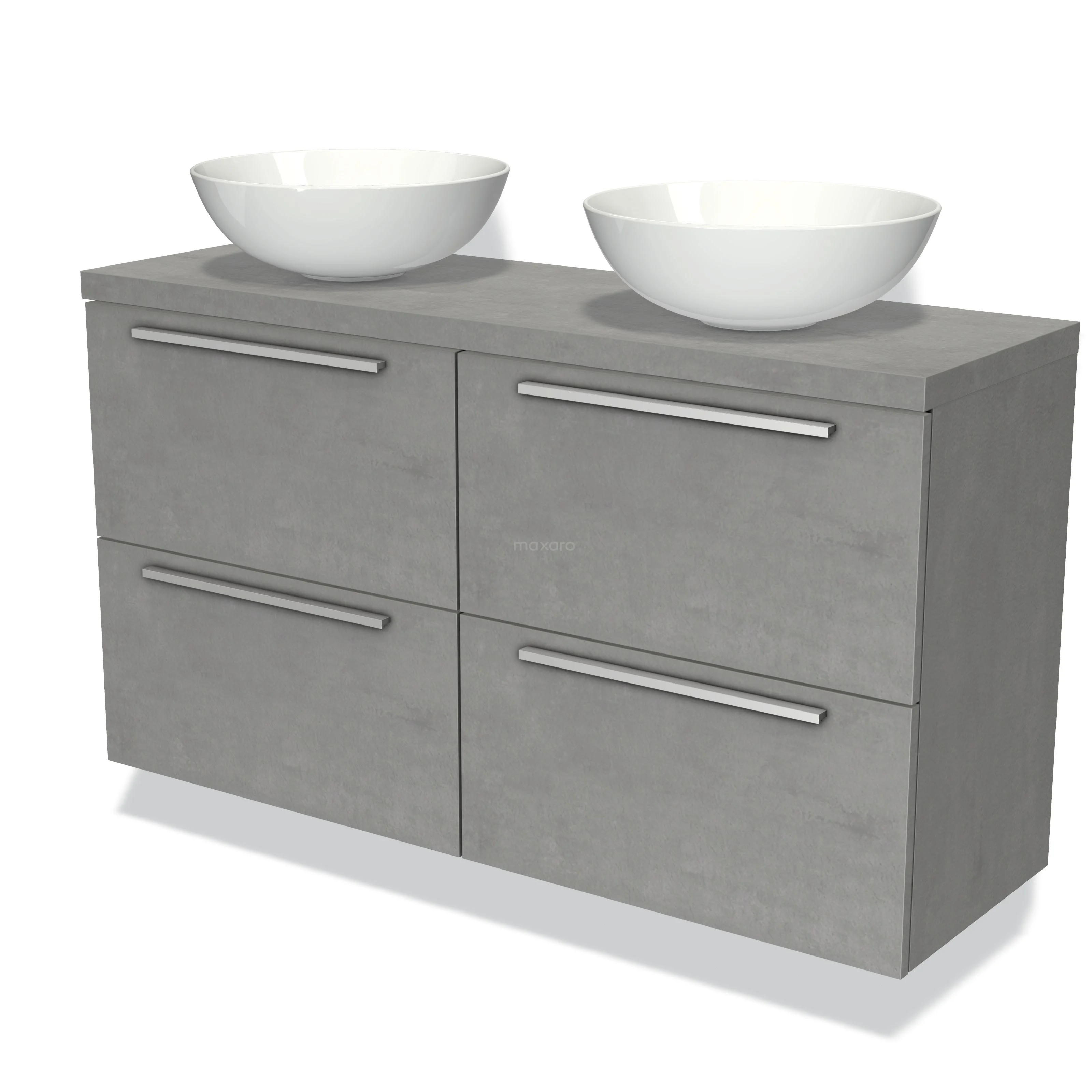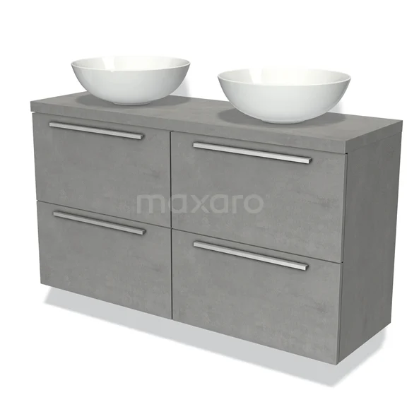 Modulo Plato Slim Badmöbel mit Aufsatzwaschbecken | 120 cm Hellgrauer Beton Flach front Hellgrauer Beton blatt 4 Schubladen