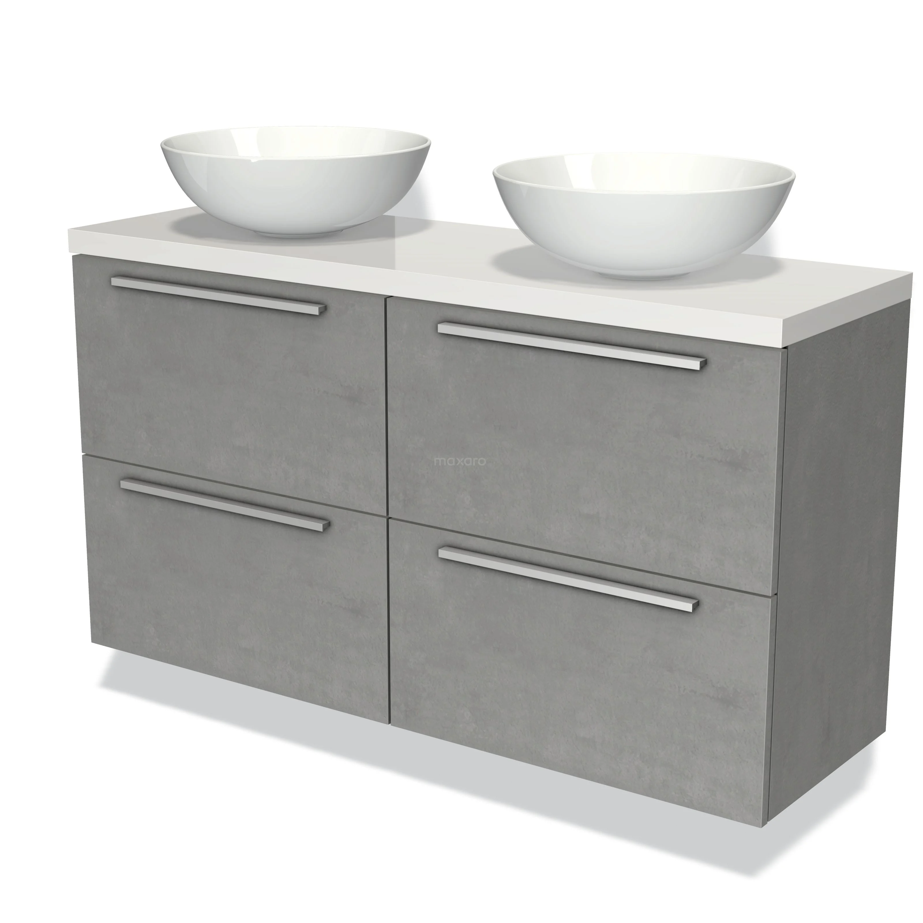 Modulo Plato Slim Badmöbel mit Aufsatzwaschbecken | 120 cm Hellgrauer Beton Flach front Hochglanz Weiß blatt 4 Schubladen