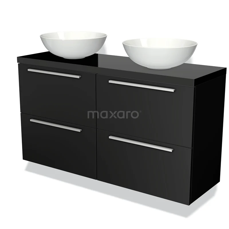 Modulo Plato Slim Badmöbel mit Aufsatzwaschbecken | 120 cm Matt Schwarz Flach front Hochglanz Schwarz blatt 4 Schubladen