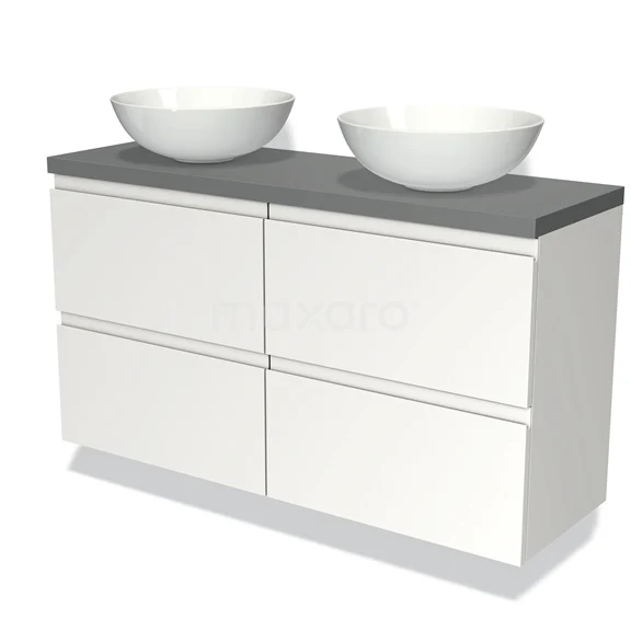 Modulo Plato Slim Badmöbel mit Aufsatzwaschbecken | 120 cm Matt Weiß Grifflos front Mittelgrau blatt 4 Schubladen