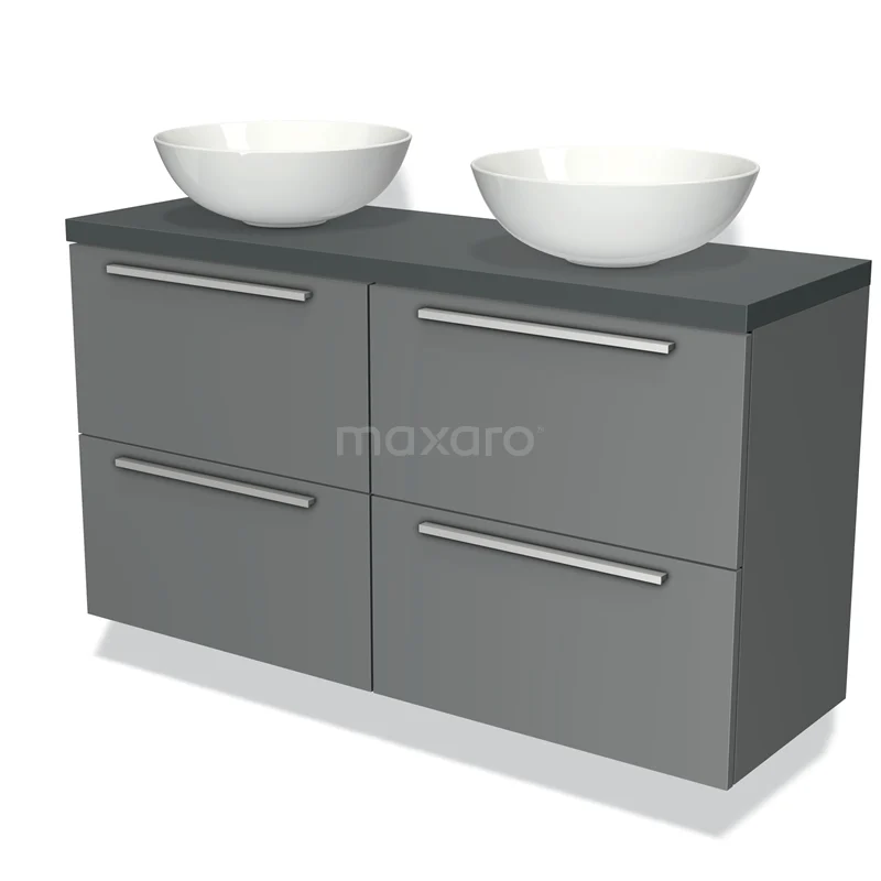 Modulo Plato Slim Badmöbel mit Aufsatzwaschbecken | 120 cm Mittelgrau Flach front Dunkelgrau blatt 4 Schubladen
