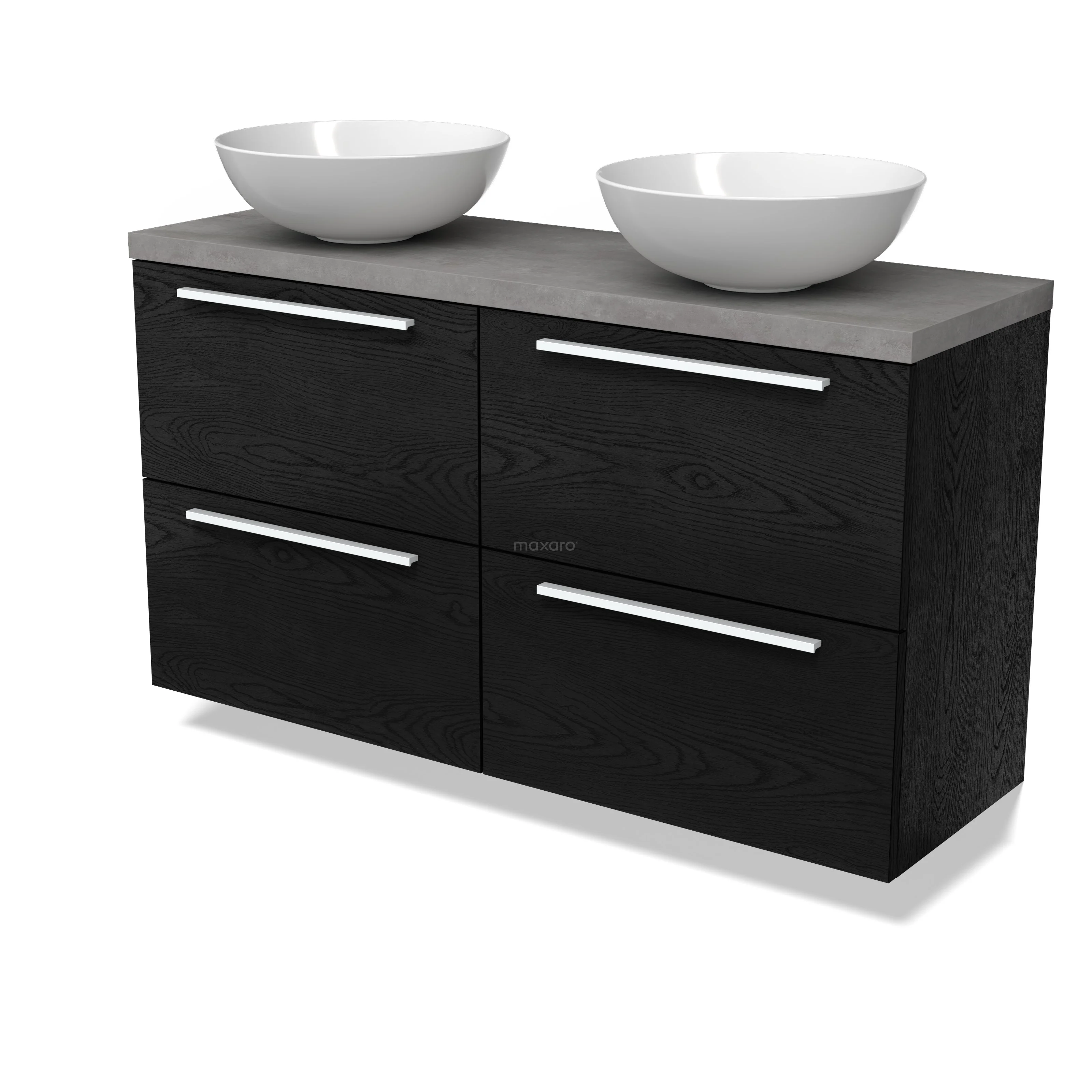 Modulo Plato Slim Badmöbel mit Aufsatzwaschbecken | 120 cm Schwarze Eiche Flach front Hellgrauer Beton blatt 4 Schubladen