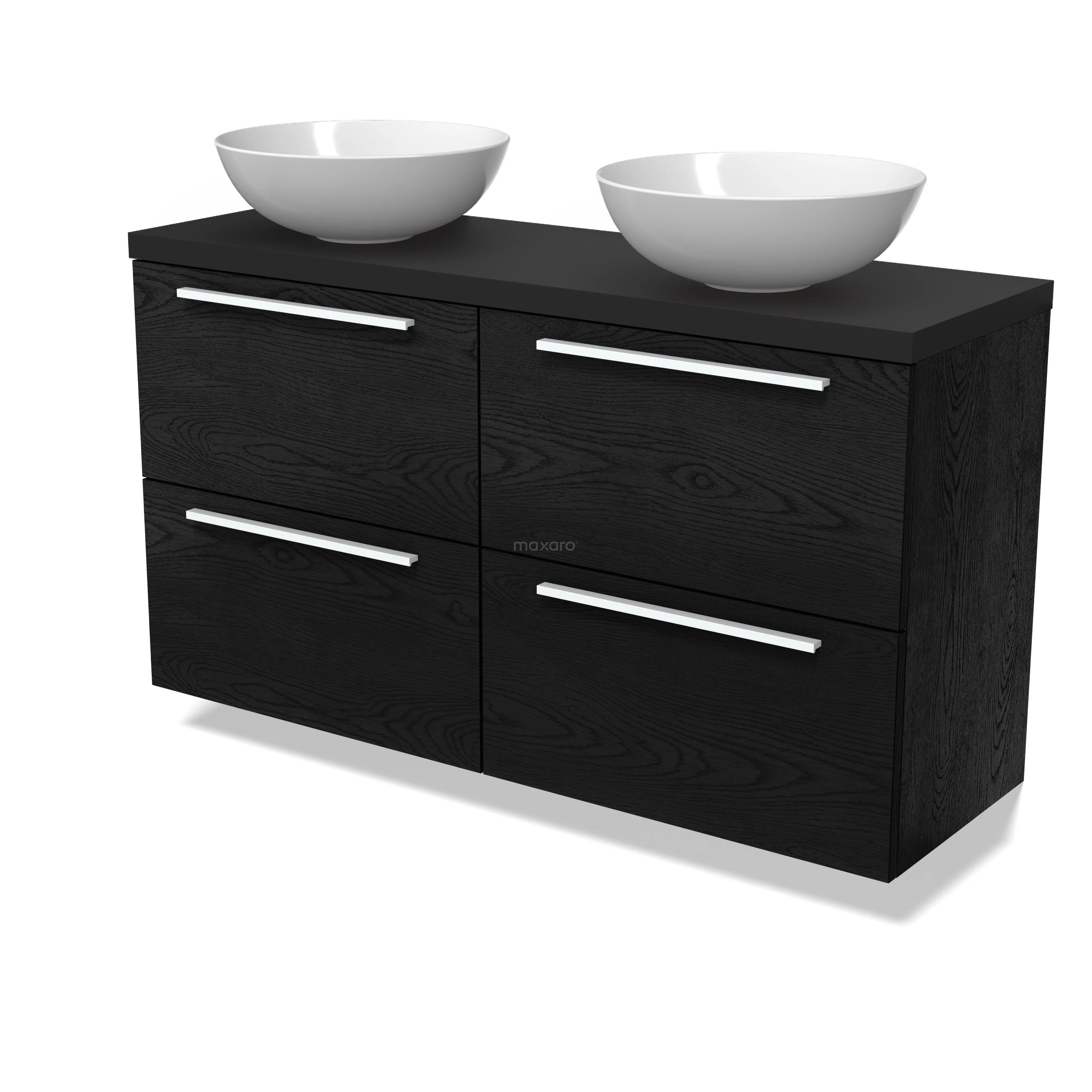 Modulo Plato Slim Badmöbel mit Aufsatzwaschbecken | 120 cm Schwarze Eiche Flach front Matt Schwarz blatt 4 Schubladen