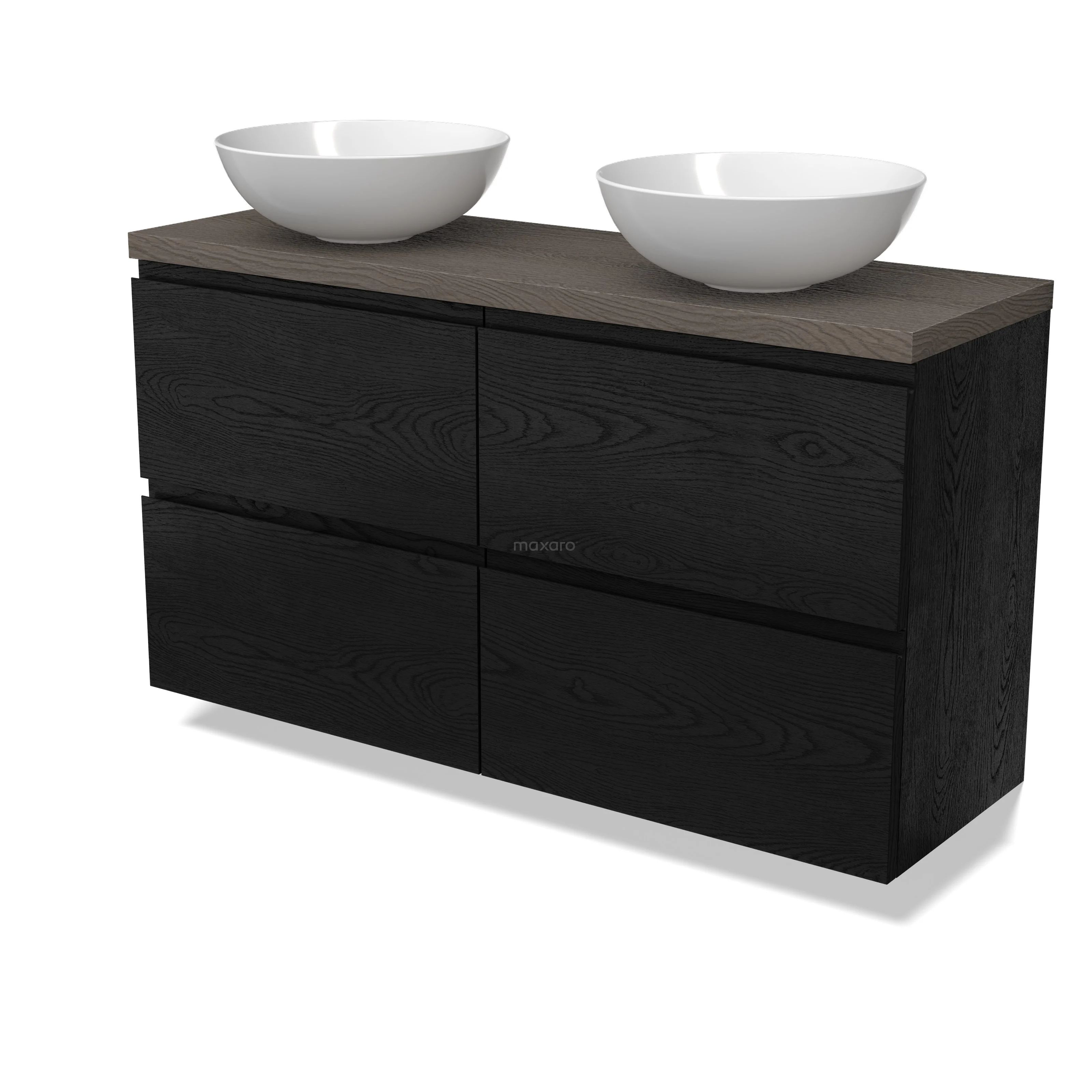 Modulo Plato Slim Badmöbel mit Aufsatzwaschbecken | 120 cm Schwarze Eiche Grifflos front Dunkelbraune Eiche blatt 4 Schubladen