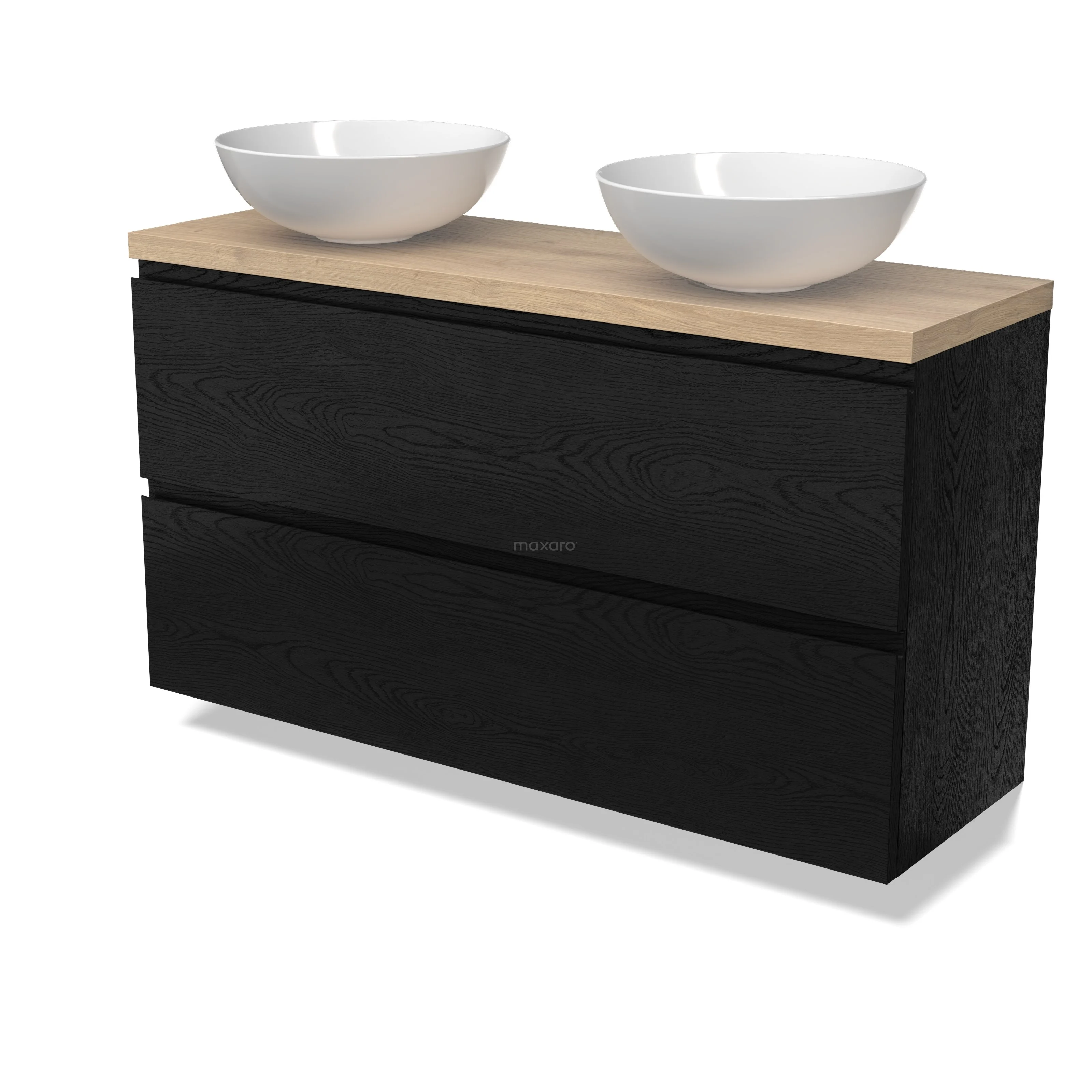 Modulo Plato Slim Badmöbel mit Aufsatzwaschbecken | 120 cm Schwarze Eiche Grifflos front Hellbraune Eiche blatt 2 übereinanderliegende Schubladen