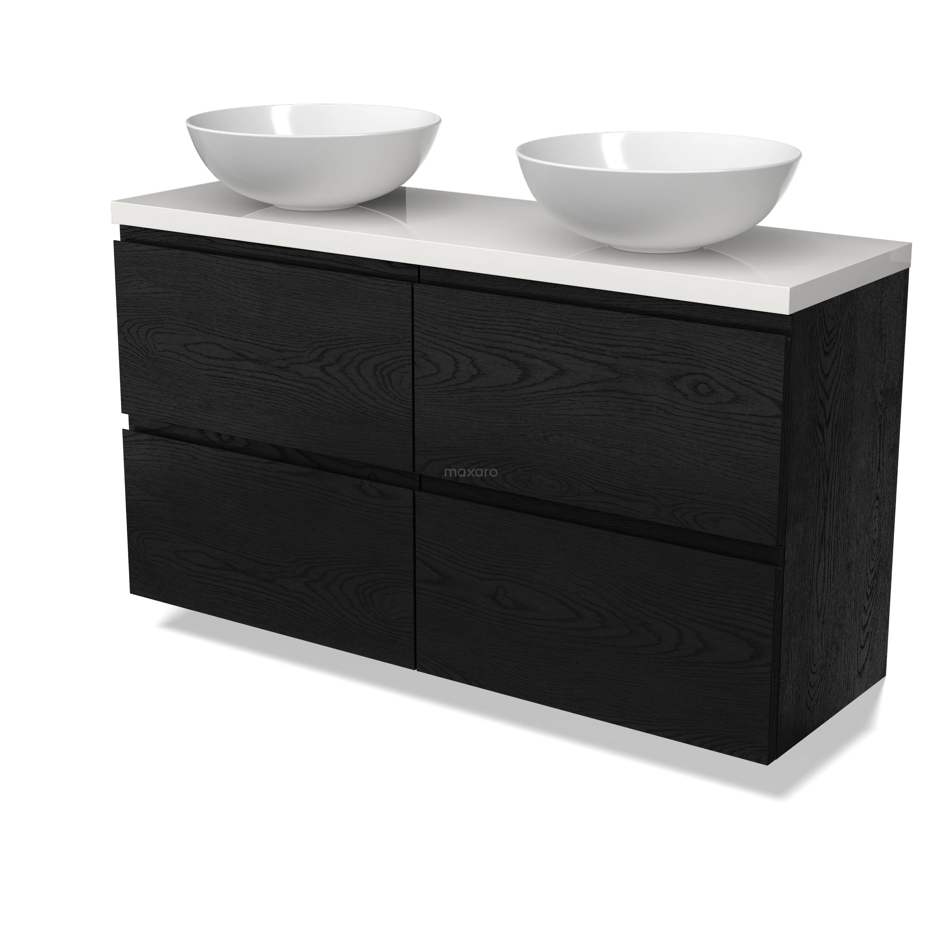 Modulo Plato Slim Badmöbel mit Aufsatzwaschbecken | 120 cm Schwarze Eiche Grifflos front Hochglanz Weiß blatt 4 Schubladen BMK38-00549
