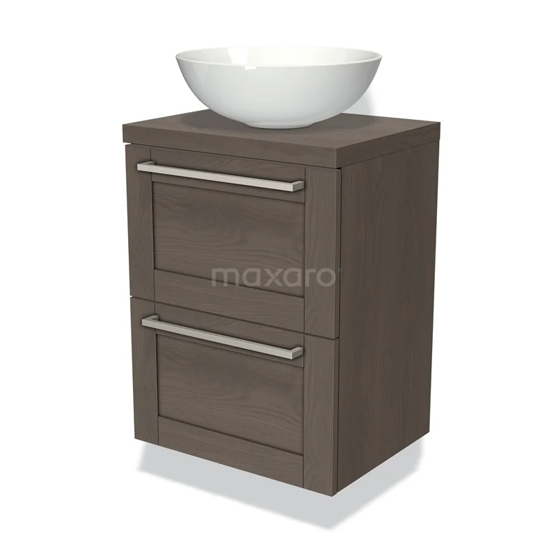 Modulo Plato Slim Badmöbel mit Aufsatzwaschbecken | 50 cm Dunkelbraune Eiche Rahmen front Dunkelbraune Eiche blatt 2 übereinanderliegende Schubladen