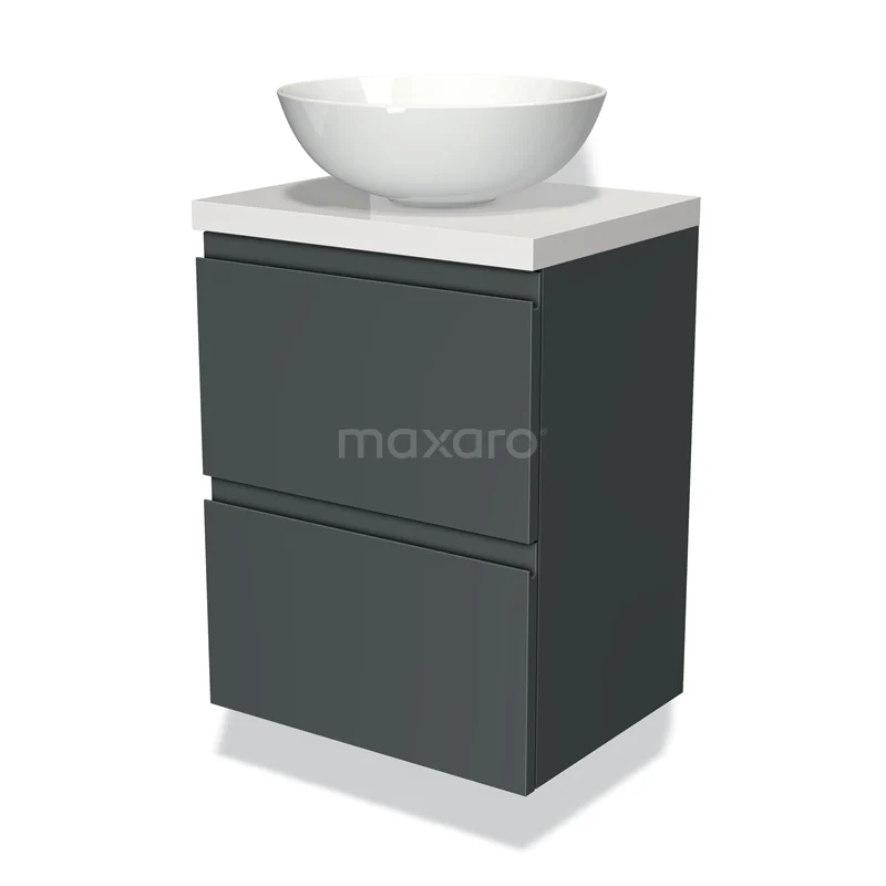 Modulo Plato Slim Badmöbel mit Aufsatzwaschbecken | 50 cm Dunkelgrau Grifflos front Hochglanz Weiß blatt 2 übereinanderliegende Schubladen