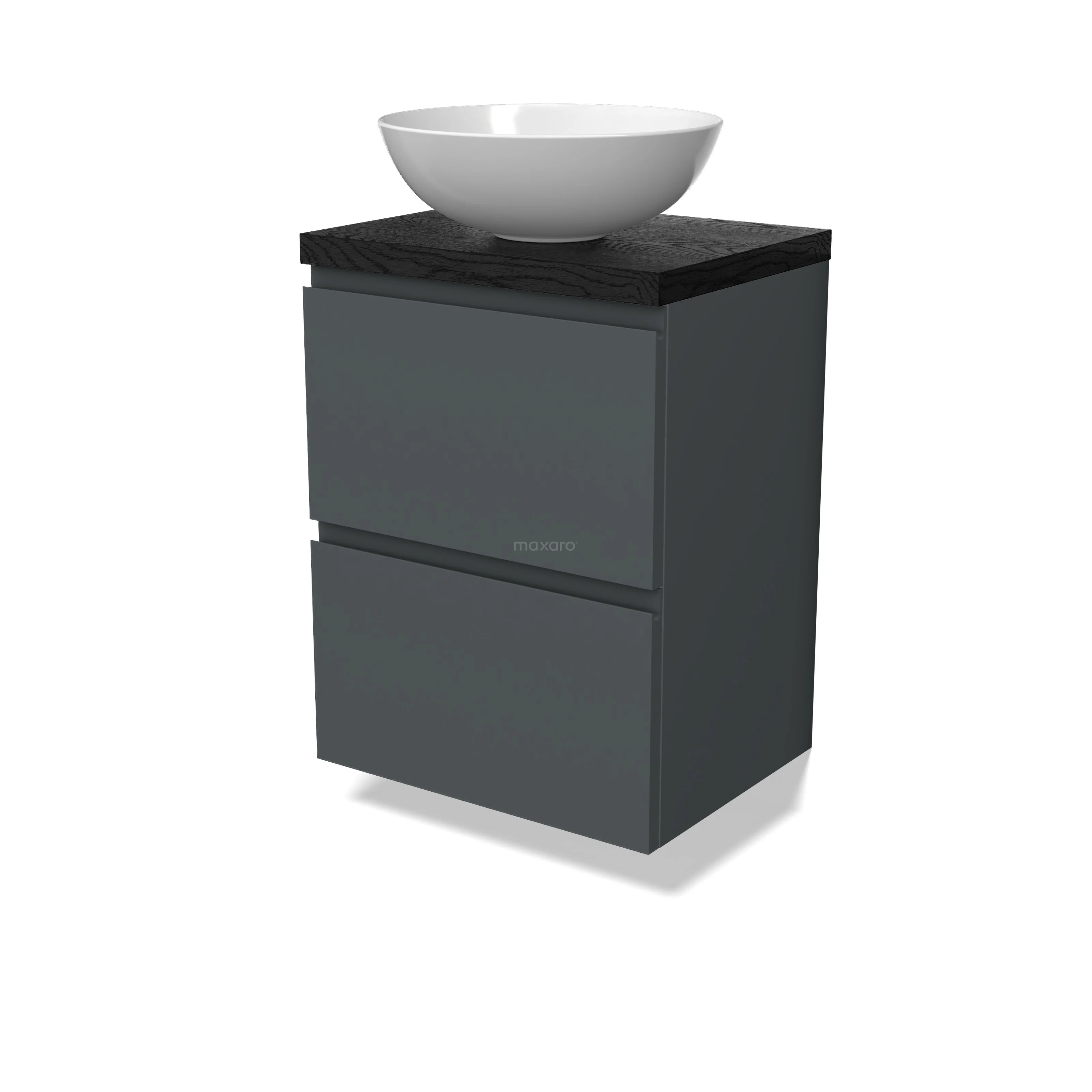 Modulo Plato Slim Badmöbel mit Aufsatzwaschbecken | 50 cm Dunkelgrau Grifflos front Schwarze Eiche blatt 2 übereinanderliegende Schubladen