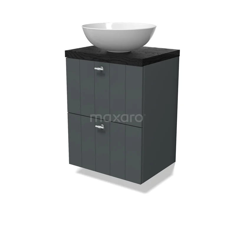Modulo Plato Slim Badmöbel mit Aufsatzwaschbecken | 50 cm Dunkelgrau Lamelle front Schwarze Eiche blatt 2 übereinanderliegende Schubladen