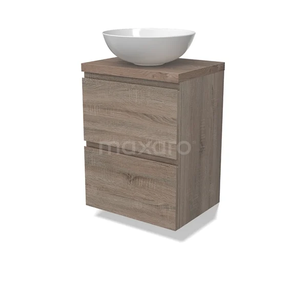 Modulo Plato Slim Badmöbel mit Aufsatzwaschbecken | 50 cm Eiche Grifflos front Mittelbraune Eiche blatt 2 übereinanderliegende Schubladen