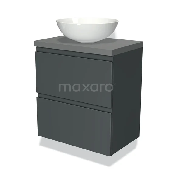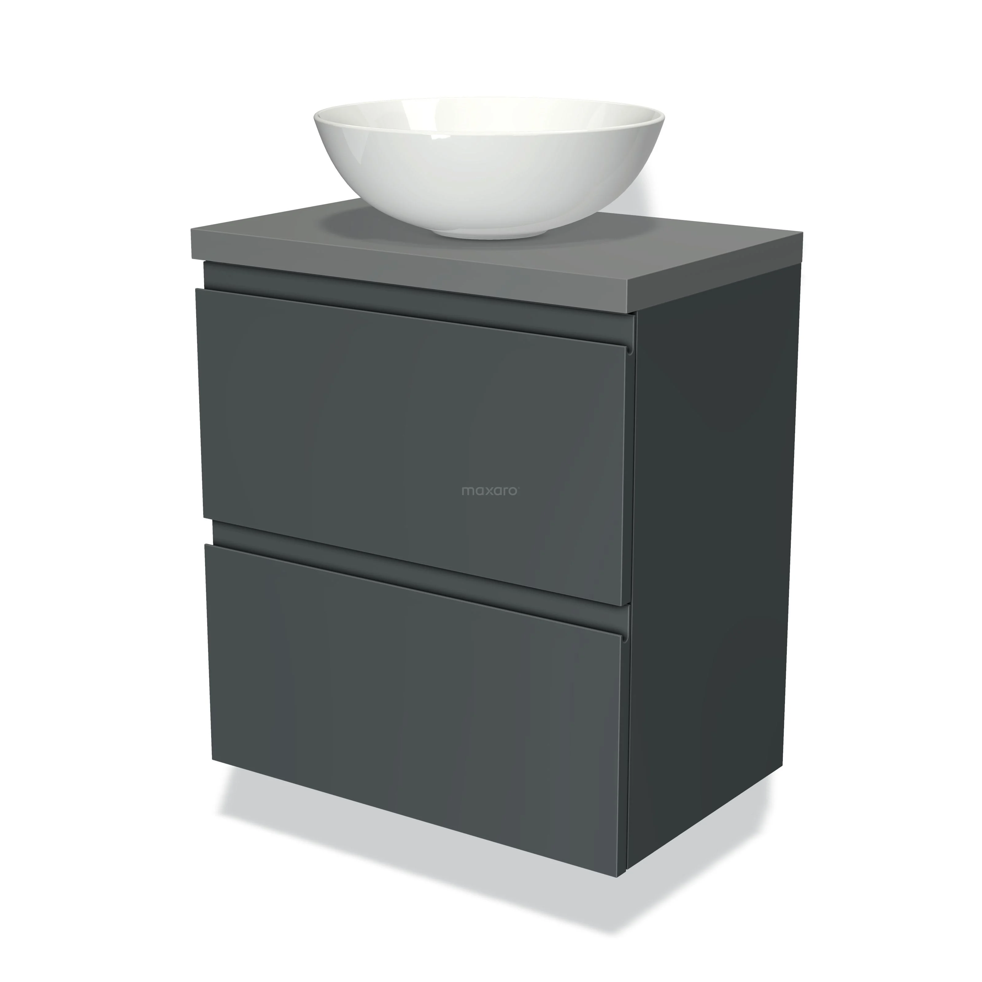 Modulo Plato Slim Badmöbel mit Aufsatzwaschbecken | 60 cm Dunkelgrau Grifflos front Mittelgrau blatt 2 übereinanderliegende Schubladen
