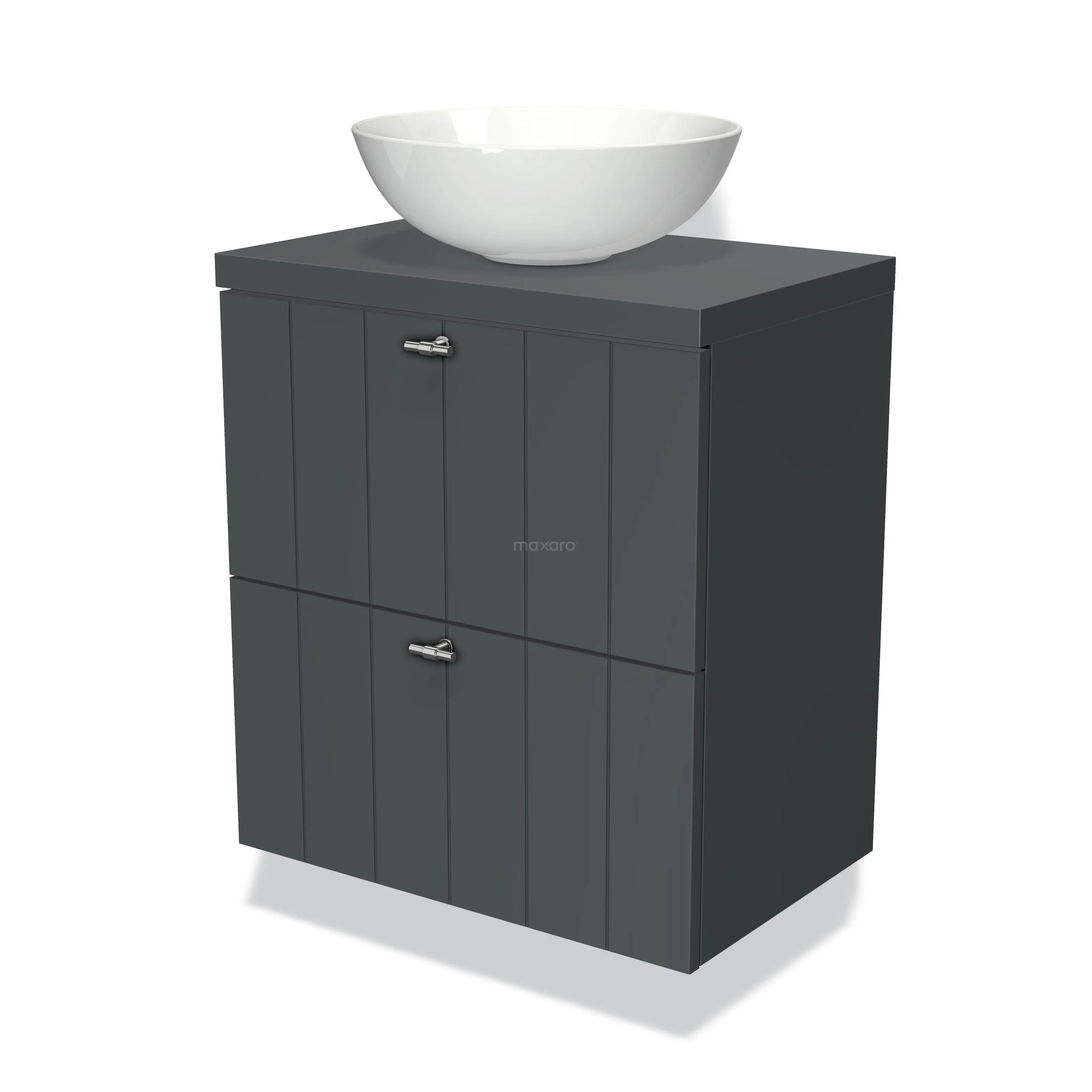 Modulo Plato Slim Badmöbel mit Aufsatzwaschbecken | 60 cm Dunkelgrau Lamelle front Dunkelgrau blatt 2 übereinanderliegende Schubladen