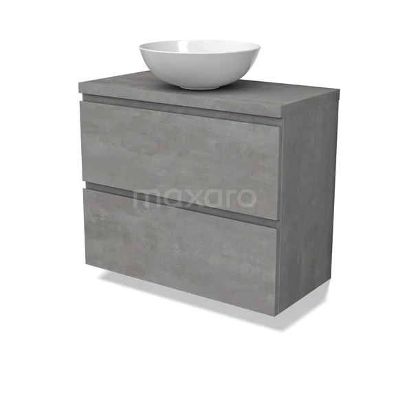 Modulo Plato Slim Badmöbel mit Aufsatzwaschbecken | 80 cm Hellgrauer Beton Grifflos front Hellgrauer Beton blatt 2 übereinanderliegende Schubladen