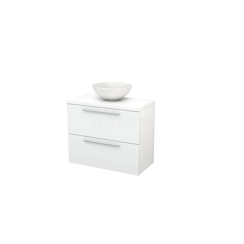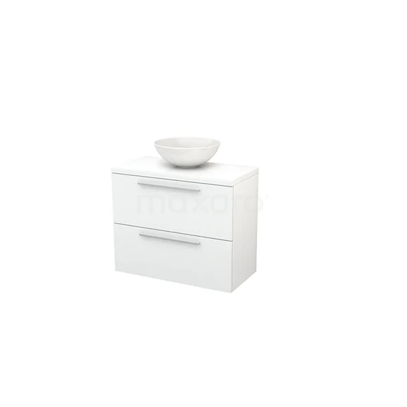 Modulo+ Plato Slim Badmöbel mit Aufsatzwaschbecken | 80 cm Hochglanz Weiß Flach front Hochglanz Weiß blatt 2 übereinanderliegende Schubladen