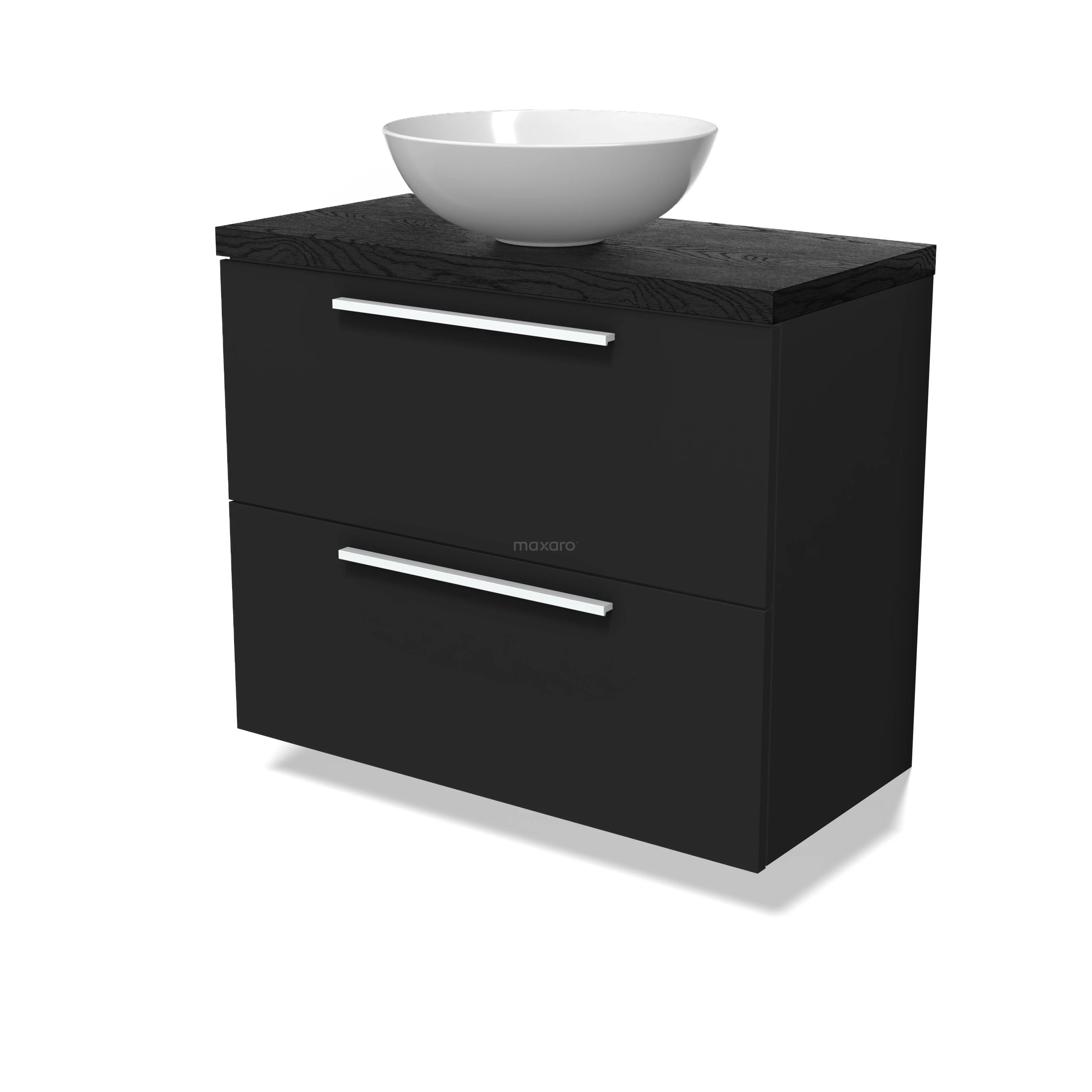 Modulo Plato Slim Badmöbel mit Aufsatzwaschbecken | 80 cm Matt Schwarz Flach front Schwarze Eiche blatt 2 übereinanderliegende Schubladen