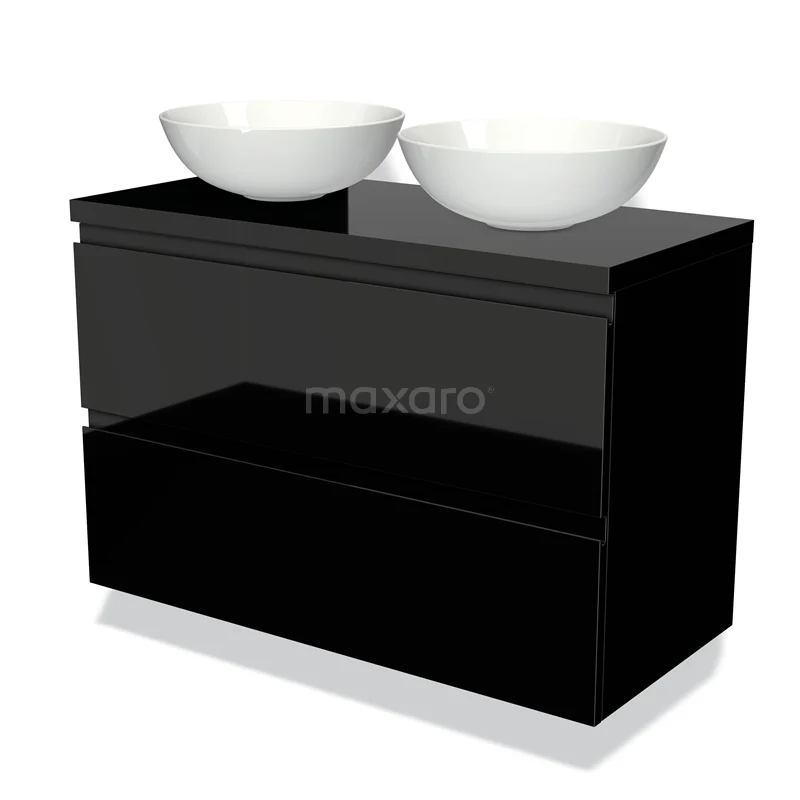 Waschtischunterschrank mit Konsole 100cm Modulo Plato Hochglanz Schwarz 2 Schubladen Grifflos