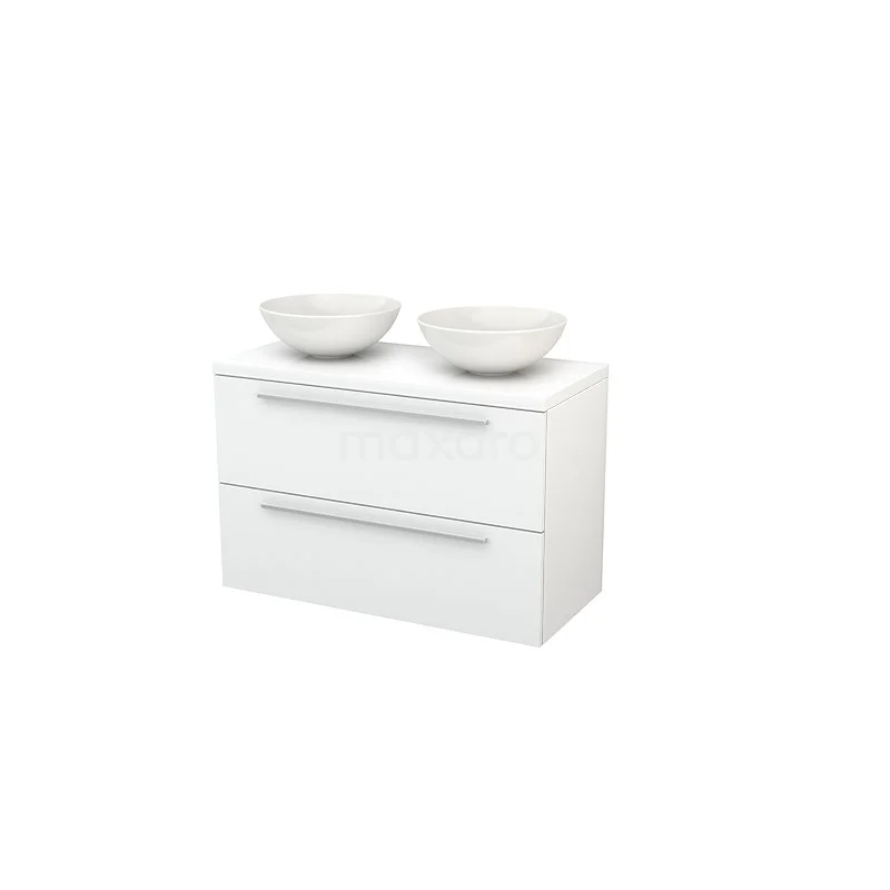 Waschtischunterschrank mit Konsole 100cm Modulo+ Plato Hochglanz Weiß 2 Schubladen Flach