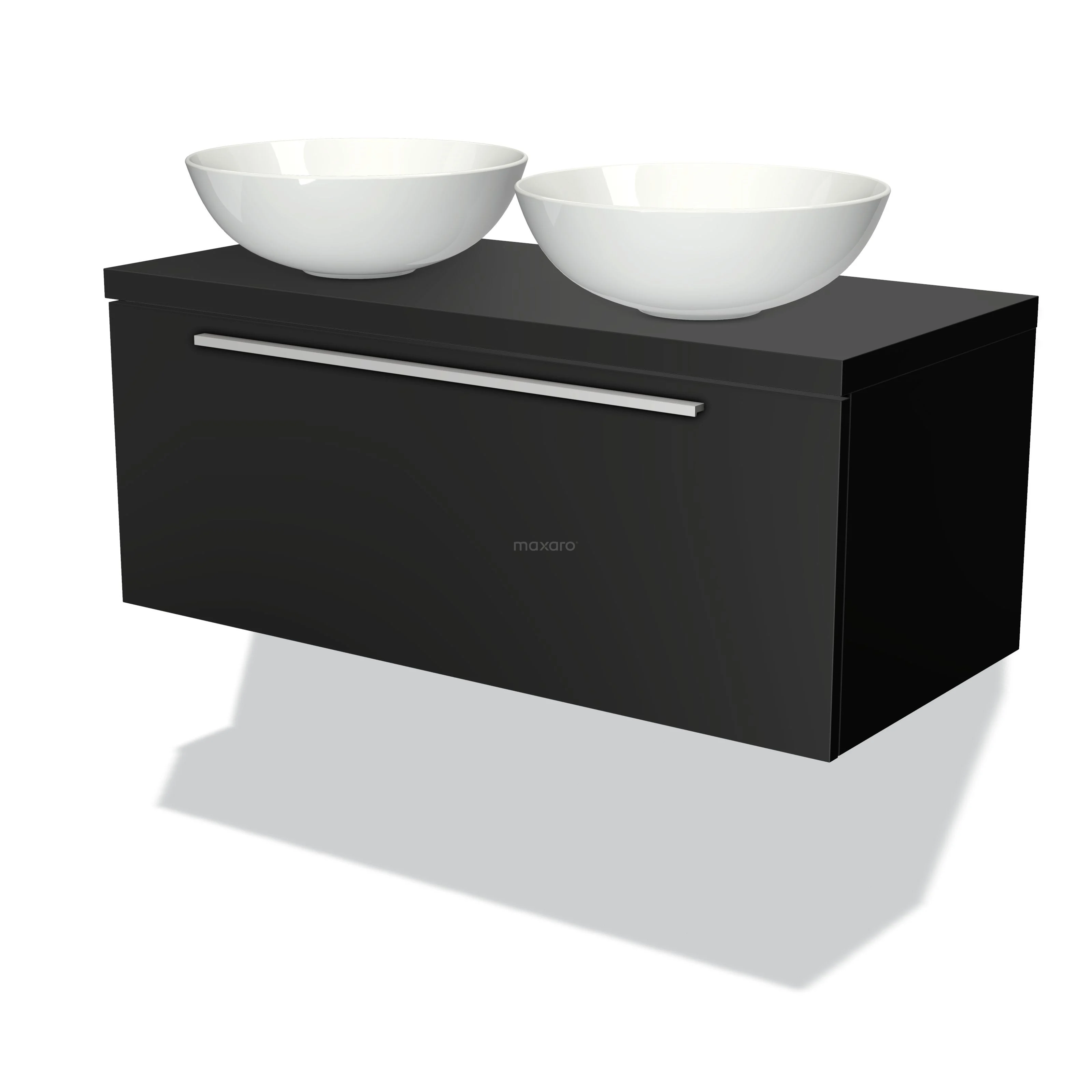 Waschtischunterschrank mit Konsole 100cm Modulo Plato Matt Schwarz 1 Schublade Flach