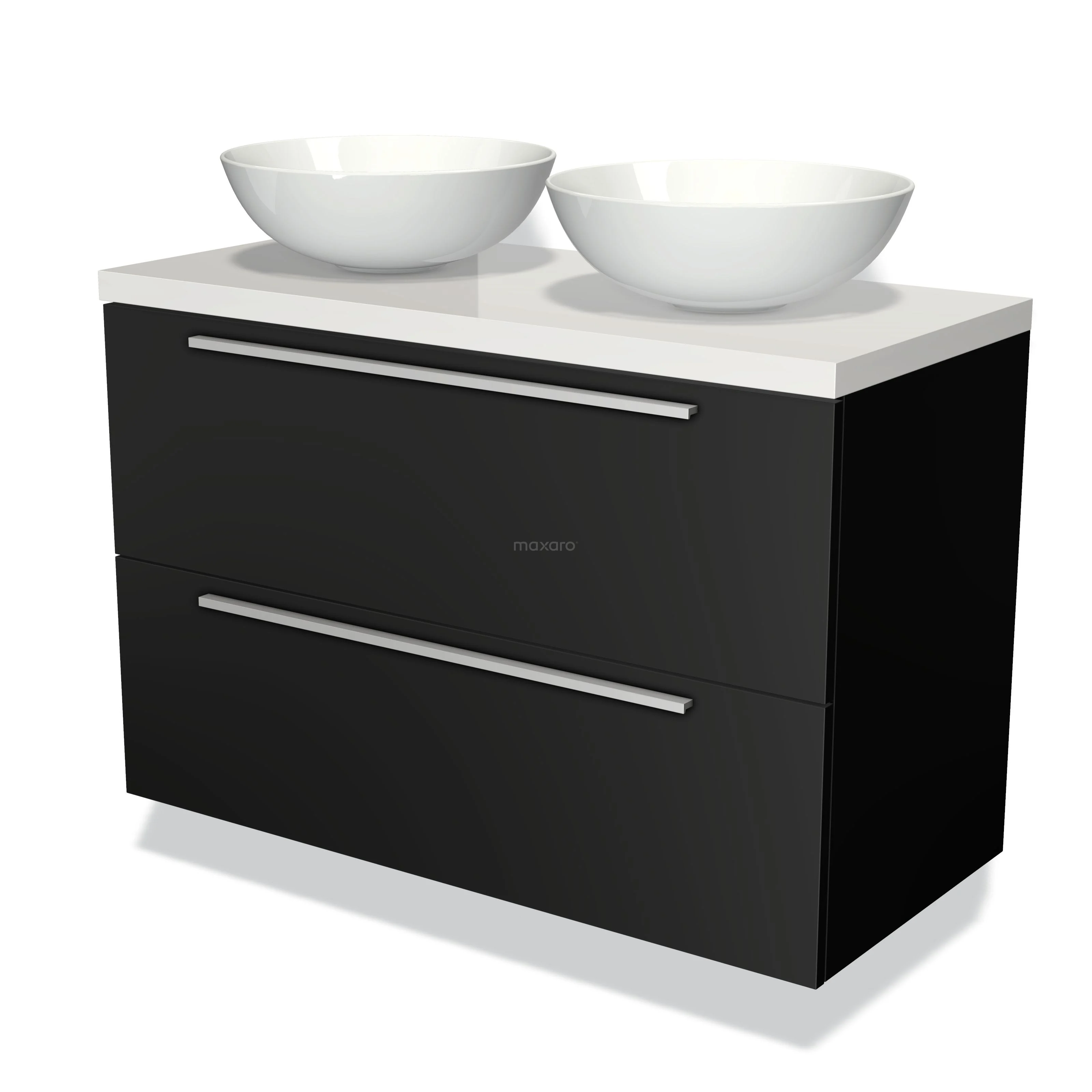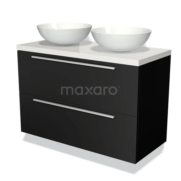 Waschtischunterschrank mit Konsole 100cm Modulo Plato Matt Schwarz 2 Schubladen Flach Hochglanz Weiß Platte