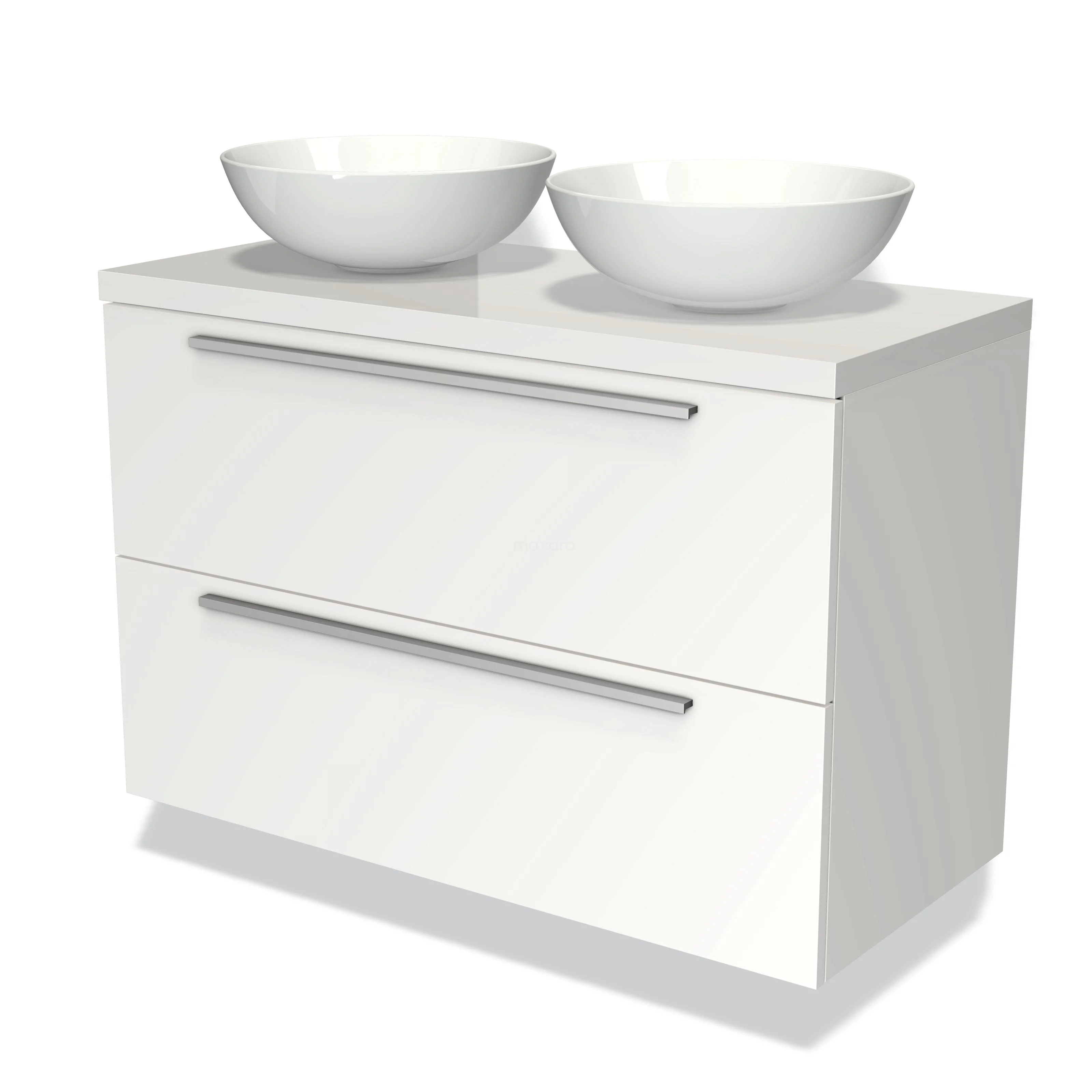 Waschtischunterschrank mit Konsole 100cm Modulo Plato Matt Weiß 2 Schubladen Flach Hochglanz Weiß Platte