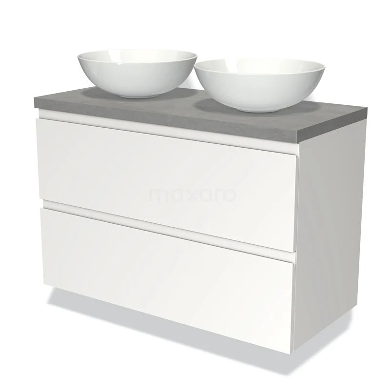Waschtischunterschrank mit Konsole 100cm Modulo Plato Matt Weiß 2 Schubladen Grifflos hellgrauer Beton Platte