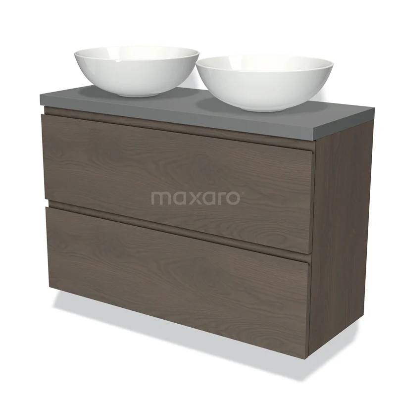Waschtischunterschrank mit Konsole 100cm Modulo Plato Slim dunkelbraune Eiche 2 Schubladen grifflos