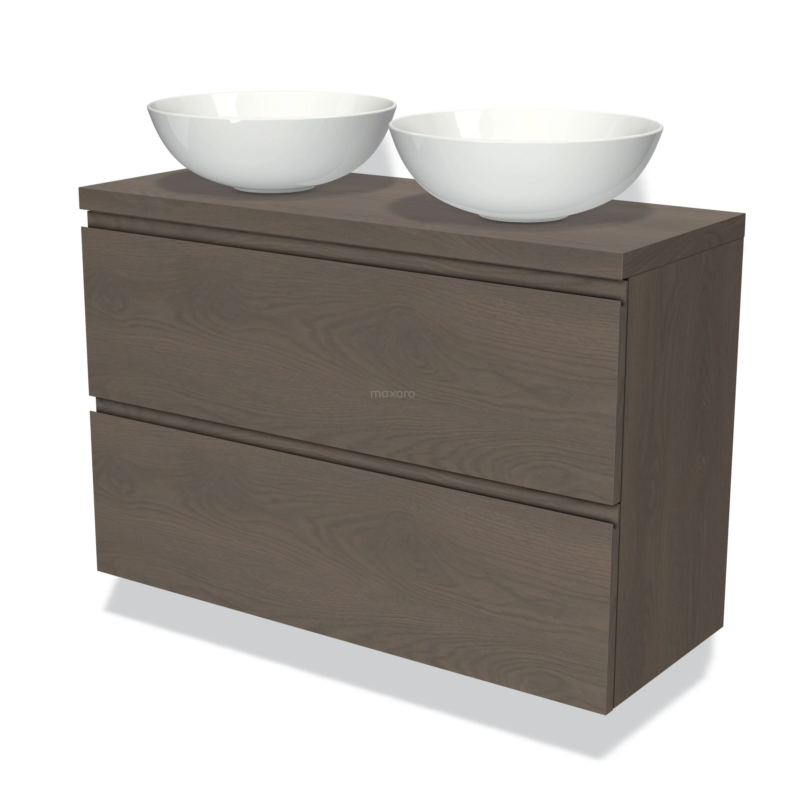 Waschtischunterschrank mit Konsole 100cm Modulo Plato Slim dunkelbraune Eiche 2 Schubladen grifflos
