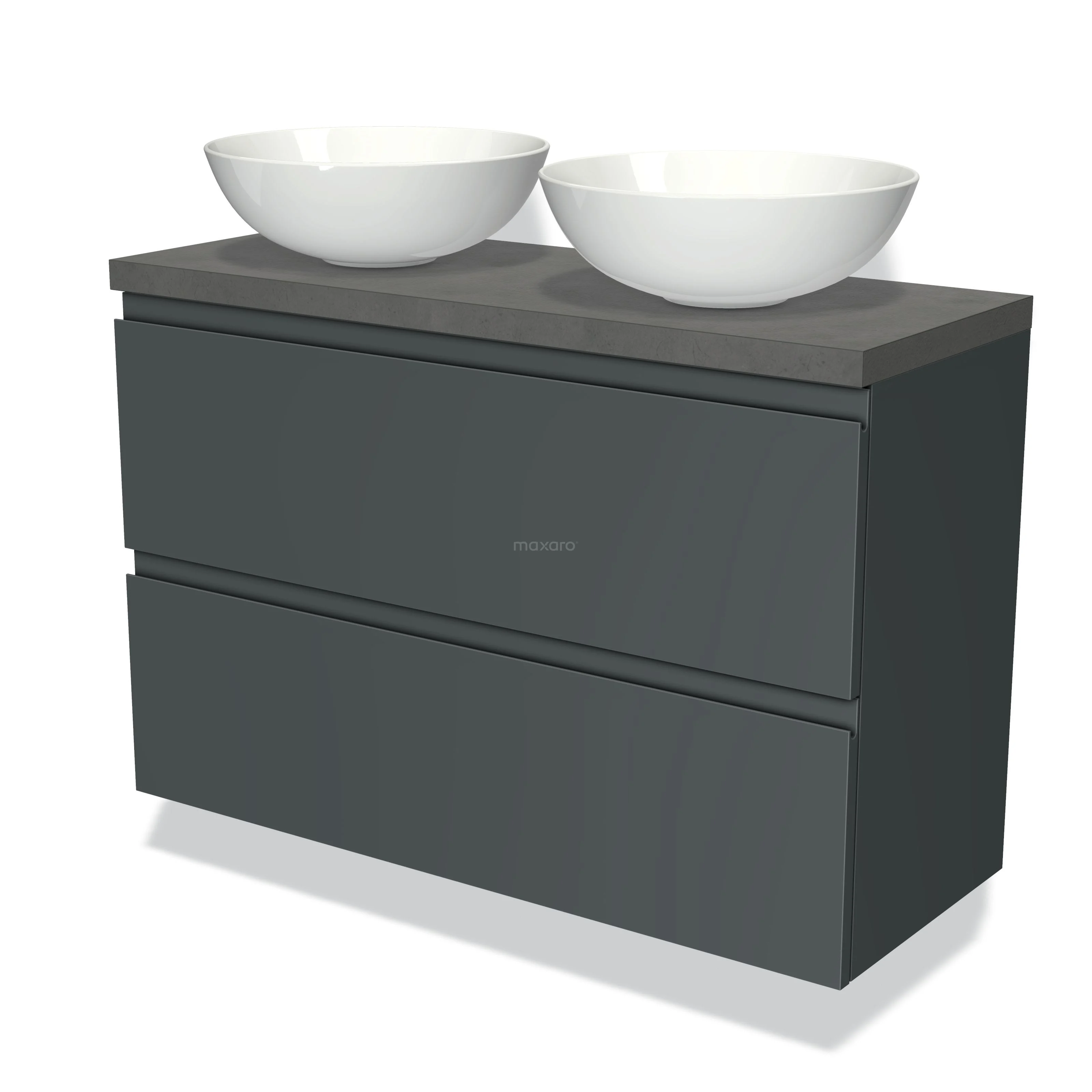Waschtischunterschrank mit Konsole 100cm Modulo Plato Slim Dunkelgrau 2 Schubladen Grifflos