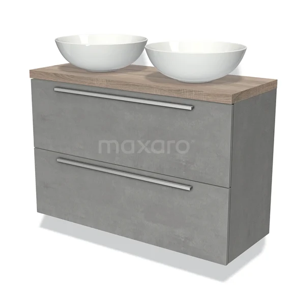 Waschtischunterschrank mit Konsole 100cm Modulo Plato Slim hellgrauer Beton 2 Schubladen Flach