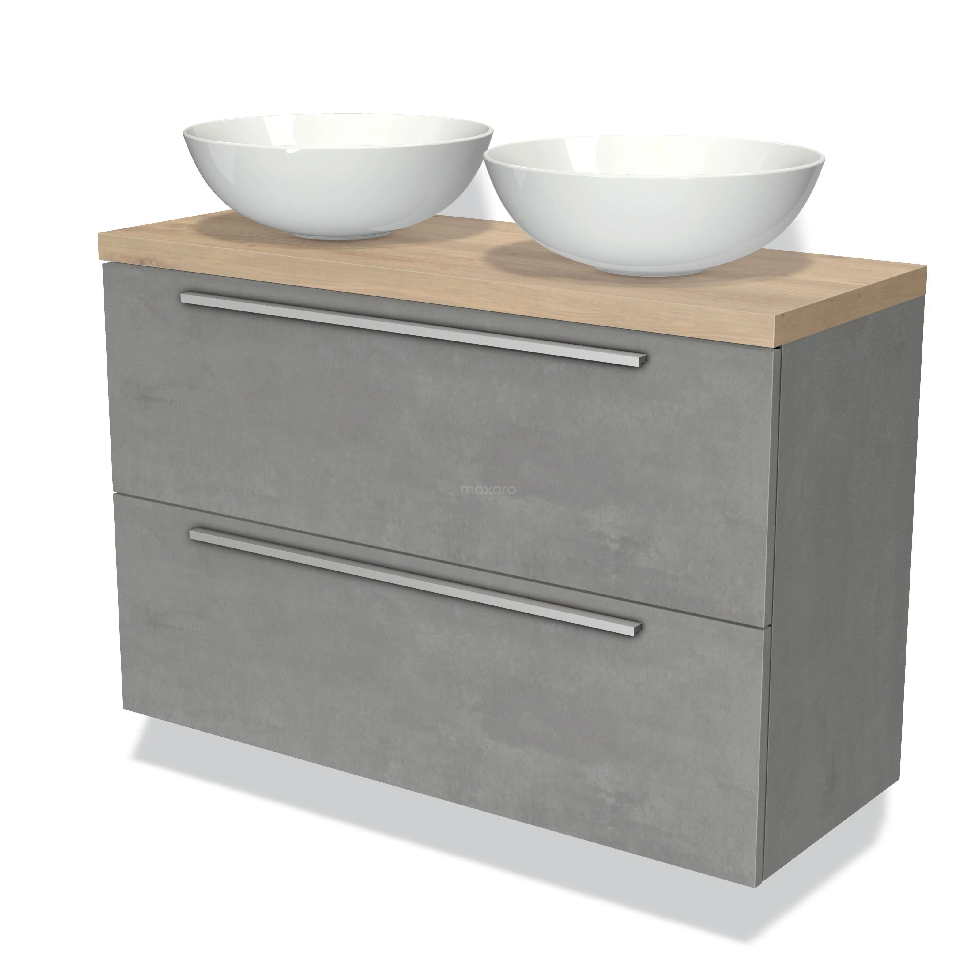 Waschtischunterschrank mit Konsole 100cm Modulo Plato Slim hellgrauer Beton 2 Schubladen Flach
