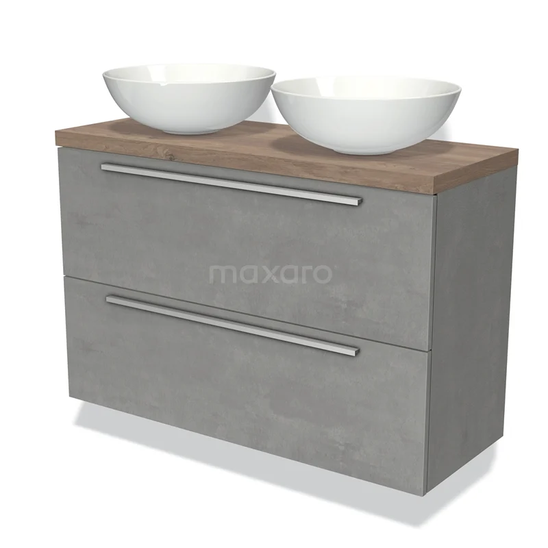 Waschtischunterschrank mit Konsole 100cm Modulo Plato Slim hellgrauer Beton 2 Schubladen Flach