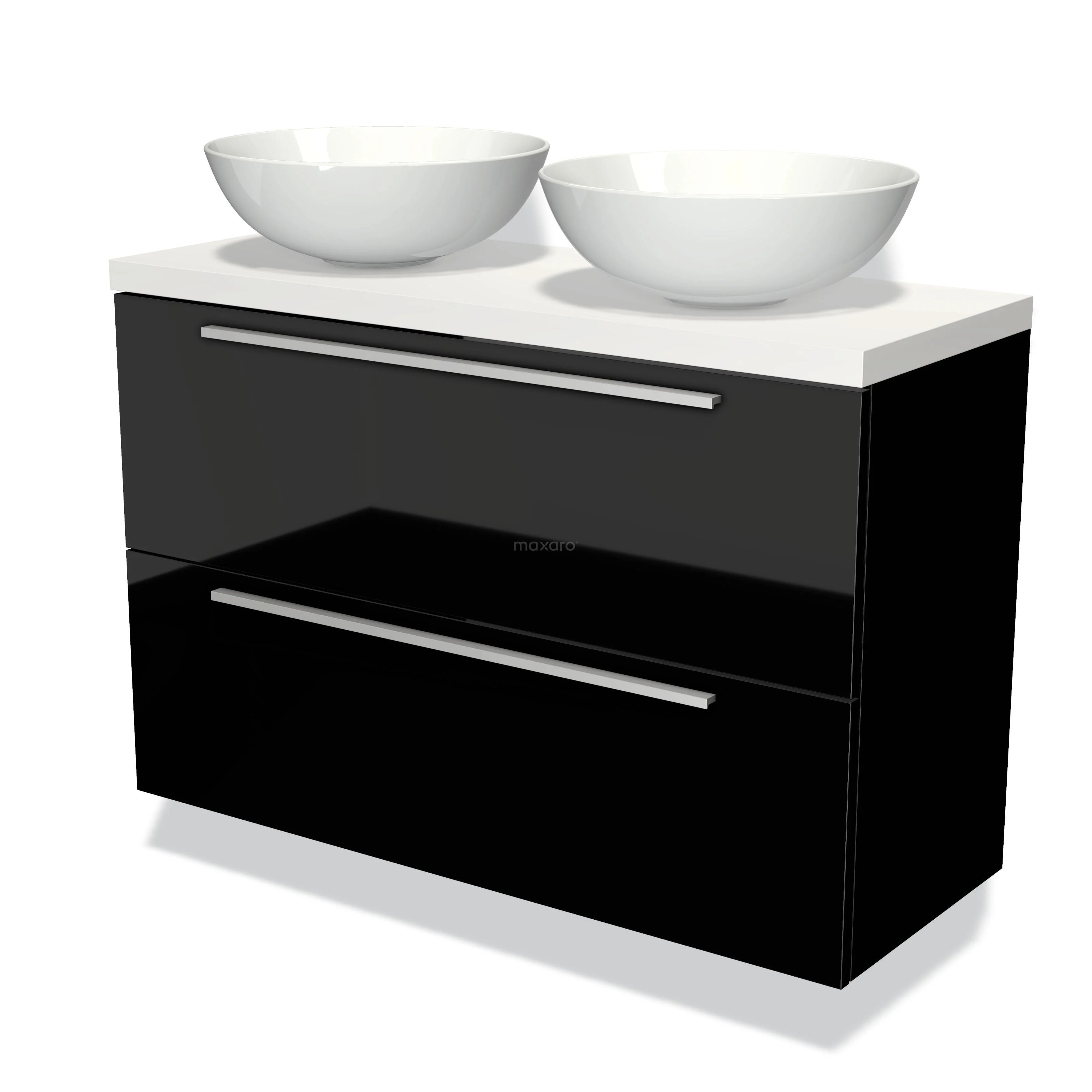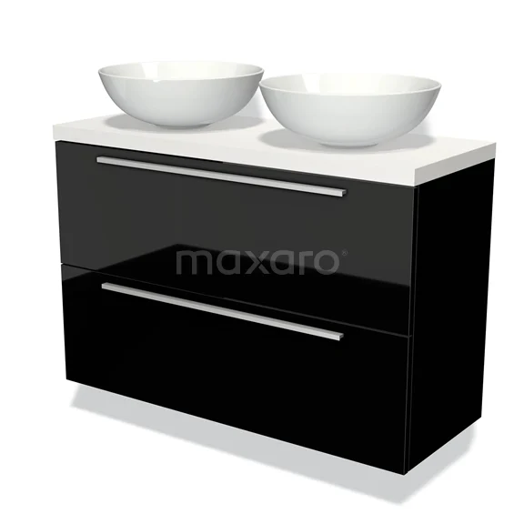 Waschtischunterschrank mit Konsole 100cm Modulo Plato Slim Hochglanz Schwarz 2 Schubladen Flach