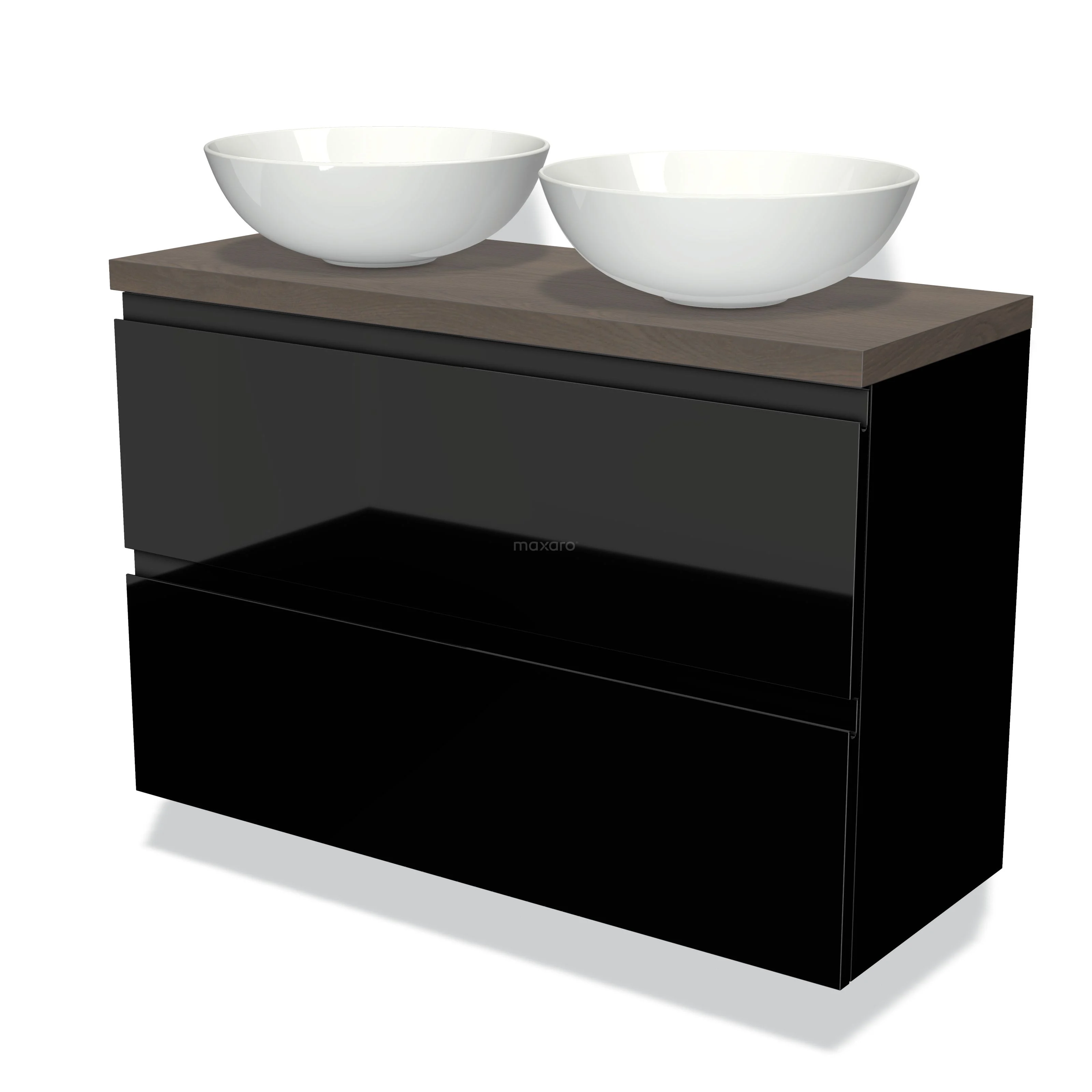 Waschtischunterschrank mit Konsole 100cm Modulo Plato Slim Hochglanz Schwarz 2 Schubladen Grifflos