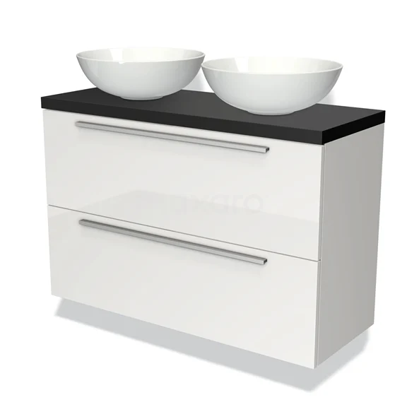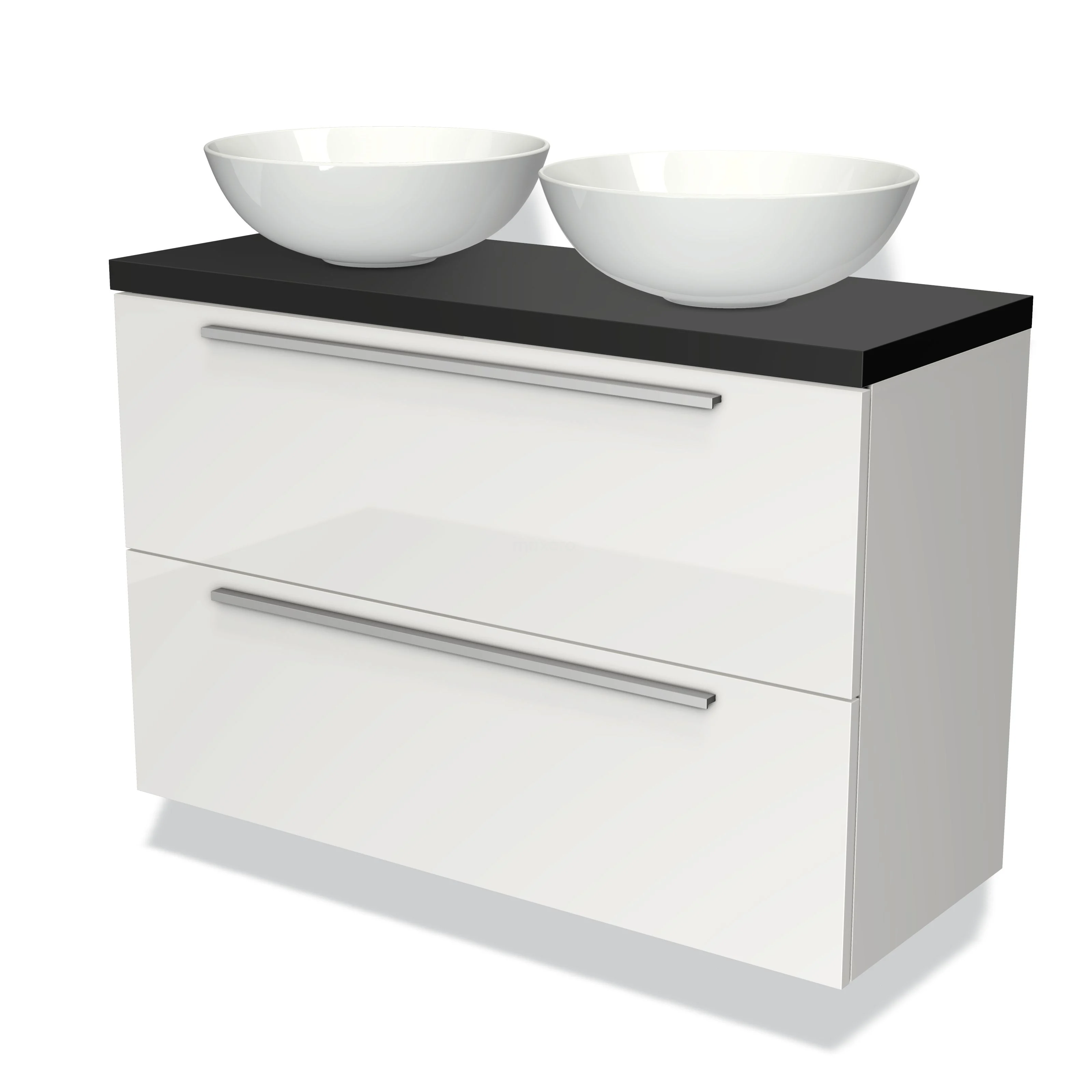 Waschtischunterschrank mit Konsole 100cm Modulo Plato Slim Hochglanz Weiß 2 Schubladen Flach