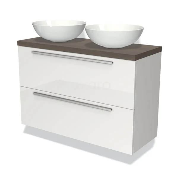 Waschtischunterschrank mit Konsole 100cm Modulo Plato Slim Hochglanz Weiß 2 Schubladen Flach