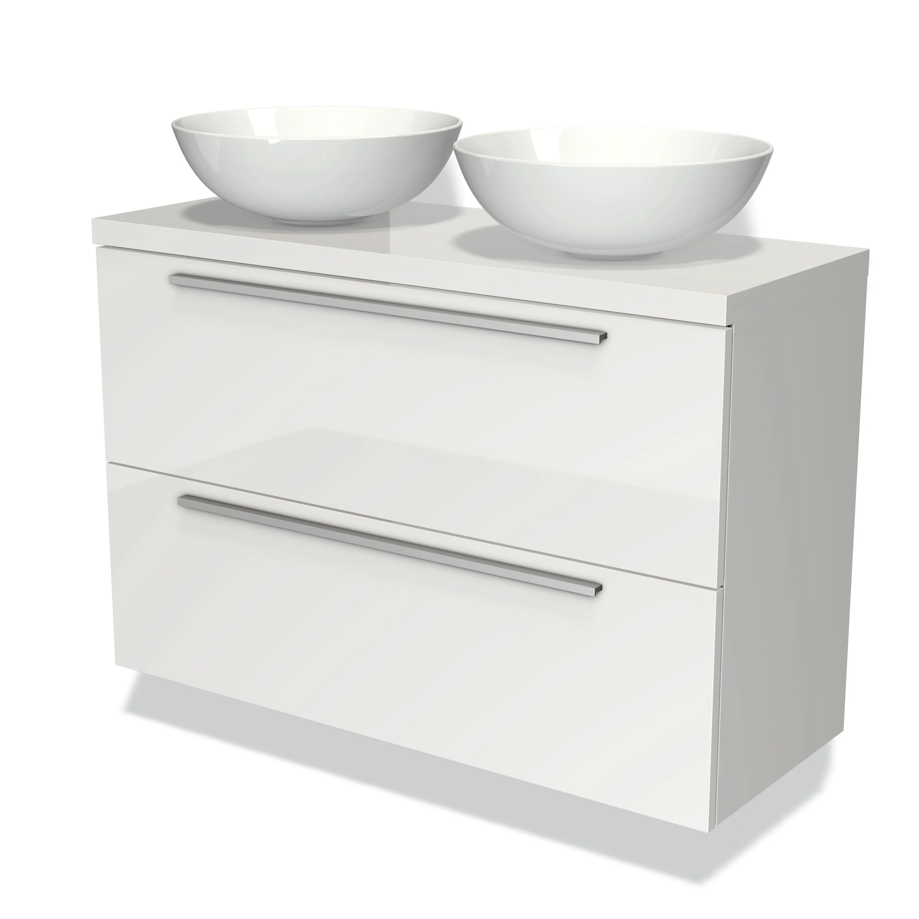 Waschtischunterschrank mit Konsole 100cm Modulo Plato Slim Hochglanz Weiß 2 Schubladen Flach