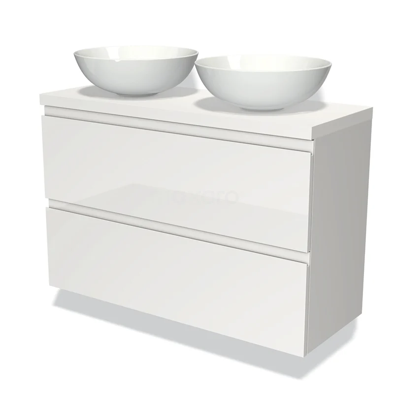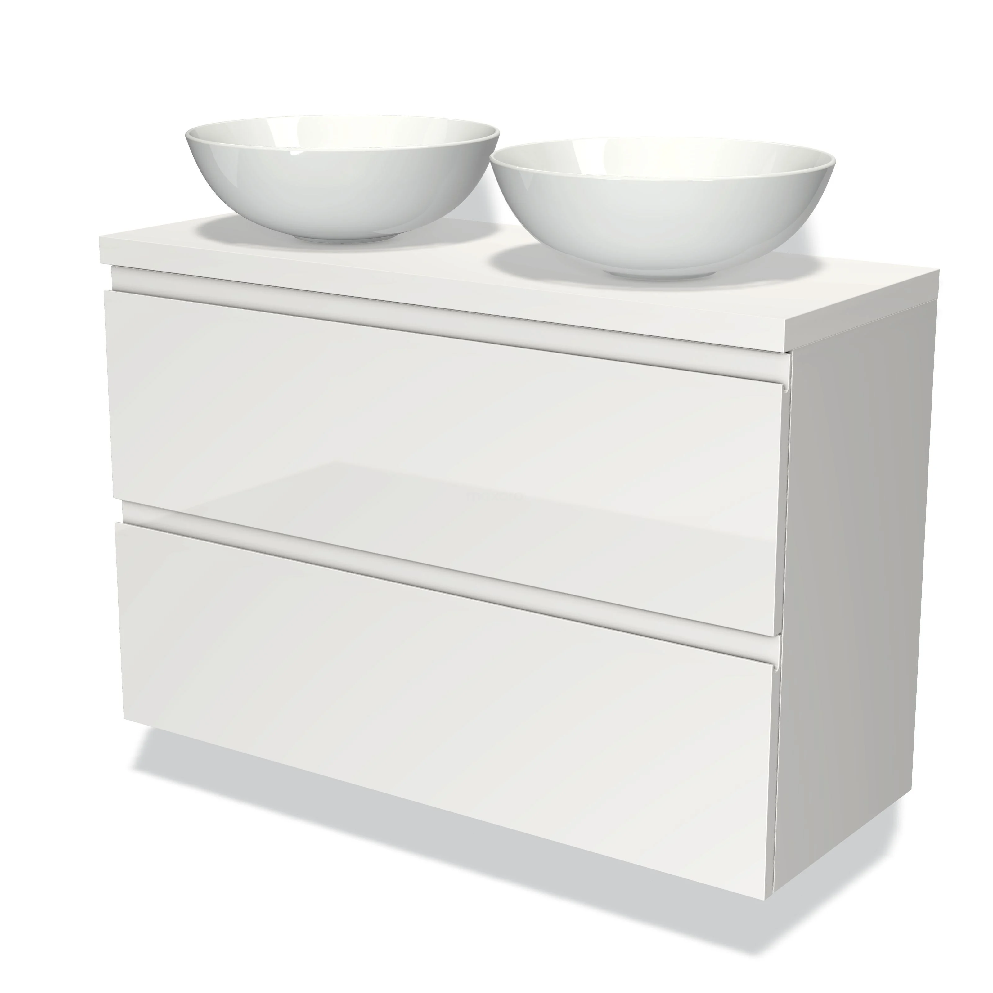 Waschtischunterschrank mit Konsole 100cm Modulo Plato Slim Hochglanz Weiß 2 Schubladen Grifflos